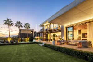 Außergewöhnliche, moderne Villa zum Verkauf in der exklusiven Wohnanlage The Hills in Benahavís, Málaga. Die ruhige, erhöhte Lage bietet einen beeindruckenden Panoramablick auf das Mittelmeer, Gibraltar und an klaren Tagen bis nach Afrika. Auf einem 950 m² großen Grundstück erbaut, bietet die Villa 630 m² Wohnfläche auf 3 Ebenen mit Südausrichtung für maximales Tageslicht. Im Erdgeschoss befinden sich ein großzügiger Wohn- und Essbereich mit raumhohen Fenstern, die auf eine weitläufige Terrasse mit großem Pool führen – ideal zum Entspannen und Unterhalten. Ebenfalls auf dieser Etage: eine elegante Designerküche mit hochwertigen Geräten, 2 Schlafzimmer mit Bad en suite sowie 2 WC. Im Obergeschoss liegen 2 weitere Schlafzimmer en suite, darunter die luxuriöse Mastersuite mit privater Terrasse und großem Ankleidezimmer. Das Untergeschoss bietet ein voll ausgestattetes Apartment für Gäste oder Personal, einen Fitnessraum sowie ein Unterhaltungszimmer mit Heimkino. Zu den Extras zählen eine Garage für 2 Fahrzeuge mit E-Ladestation, Fußbodenheizung sowie Mitsubishi-Fan-Coils zum Heizen und Kühlen. Die Immobilie liegt nahe Benahavís und Nueva Andalucía und vereint Privatsphäre, modernen Luxus und die Nähe zu Golfplätzen, Schulen und Annehmlichkeiten Marbellas.