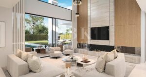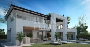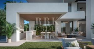 Moderne Luxusvilla in exklusiver Neubausiedlung in Estepona (Málaga). Diese stilvolle Villa befindet sich in einer Wohnanlage mit nur 15 Einheiten, im begehrten Gebiet der Neuen Goldenen Meile zwischen Marbella und Estepona. Auf drei Ebenen bietet sie 4 Schlafzimmer en suite mit Ankleideräumen, großen Fenstern und privaten Terrassen. Die Mastersuite erstreckt sich über eine ganze Flügelseite mit Designerbad und maßgefertigtem Ankleidezimmer. Im Erdgeschoss liegt ein weiteres Schlafzimmer mit Gartenzugang. Der Wohnbereich überzeugt mit fast 6 m hohen Decken und viel Tageslicht. Die offene Küche mit Miele-Geräten ist elegant in das Raumkonzept integriert. Im Außenbereich erwarten Sie überdachte und offene Terrassen, ein gepflegter Garten, ein privater Pool und eine Poolbar. Ausgestattet mit Fußbodenheizung (Aerothermie), moderner Hausautomation, Technal-Fenstern, Sicherheitssystem und zwei Stellplätzen mit E-Ladestation. Optional: Untergeschoss mit Mehrzweckraum, Hauswirtschaftsbereich, Bad und separatem Zugang; sowie Dachterrasse mit Plunge-Pool, Sommerküche, Grill und Chill-out-Zone mit Pergola. In der Nähe: Golfplätze, Luxushotels, Schulen und alle wichtigen Services - eine ideale Kombination aus Stil, Komfort und Toplage an der Costa del Sol.