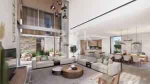 Beautiful new luxury villa for sale, located in a prime area of Dubai, United Arab Emirates, surrounded by several fully developed neighborhoods amidst serene gardens and blue lagoons. This stunning 687 m² property features contemporary open plan layouts, double height living areas and floor to ceiling windows that maximize natural light and allow you to enjoy the lush surroundings. The villa features a private pool, 5 spacious bedrooms with ensuite bathrooms, large walk-in closets and state of the art kitchens. The service staff has 3 additional bedrooms with private bathrooms. Residents of The Acres Estates enjoy first-class amenities such as beautifully landscaped gardens, swimming ponds and ample green space. The community also offers recreational areas, fitness centers and outdoor recreational spaces. For families, there is an elementary school and a daycare center, while one-third of the streets are dedicated to pedestrians and bicyclists. The price is subject to variations in the exchange rate of the local currency against the USD.