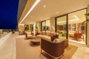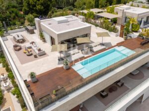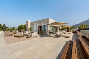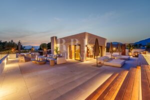 Stunning penthouse of exclusive design for sale, signed by Fendi, which represents the ultimate expression of contemporary luxury and is located in Marbella, Malaga. From the moment you enter, you are impressed by the elegant entrance hall, which gives you a taste of the sophisticated style of the rest of the house. The spacious living area stands out for its exceptional size, creating a feeling of spaciousness and comfort. Marble floors bring elegance throughout the interior, while high-quality woodwork reinforces the refined character of the space. With a built area of 425 m², the penthouse features 4 en-suite bedrooms, a private office and an interior elevator connecting the floors. The kitchen, designed and equipped by Fendi Casa, combines aesthetics and functionality at the highest level. From the main floor and the solarium you can enjoy breathtaking panoramic views of the sea and the surroundings. The upper floor features a private swimming pool and a large terrace with ample space for outdoor leisure. This unique property is perfect for those who value design, quality, and a privileged location on the Costa del Sol.