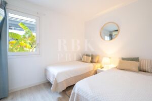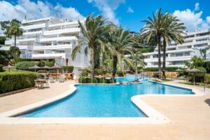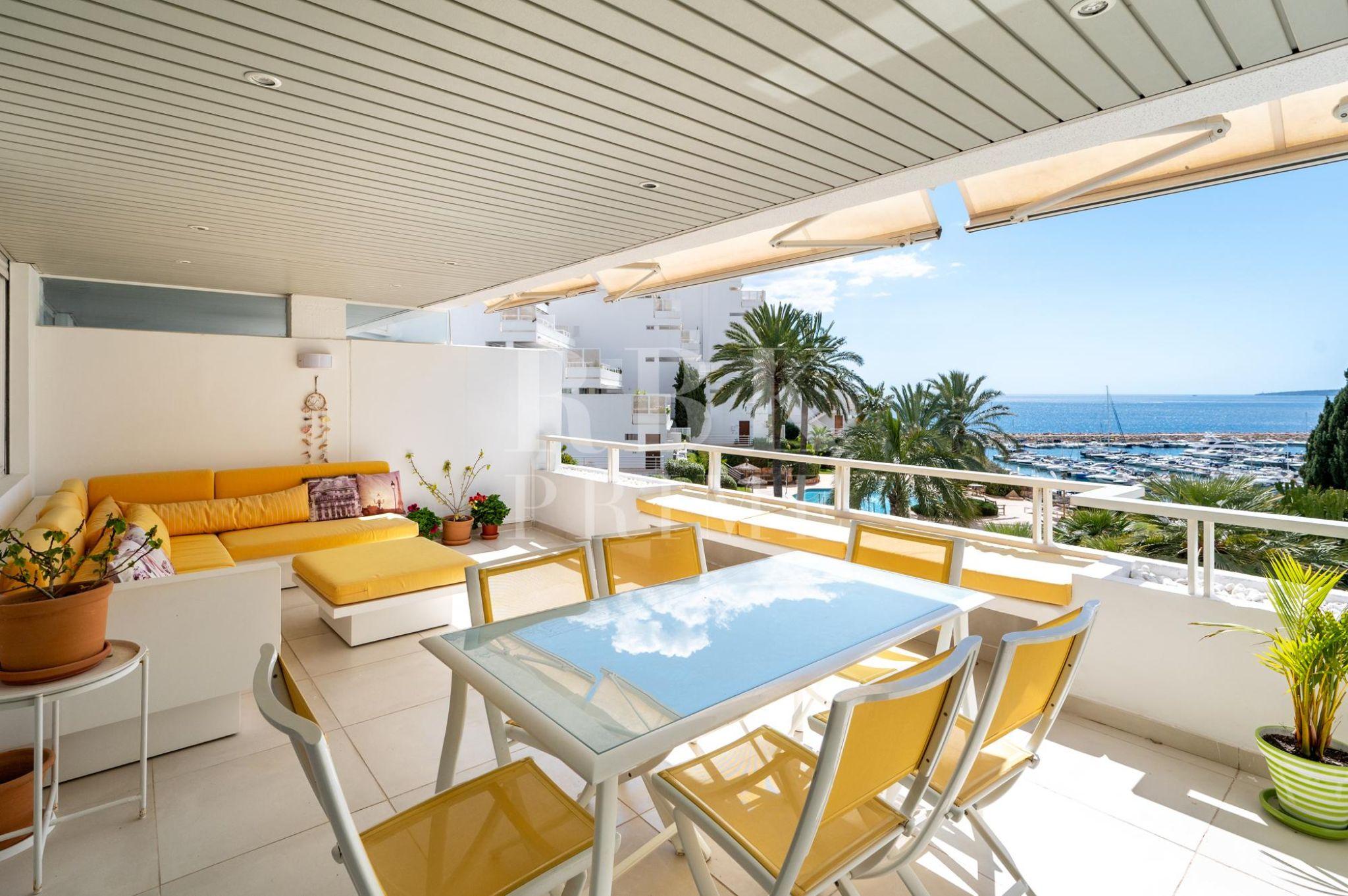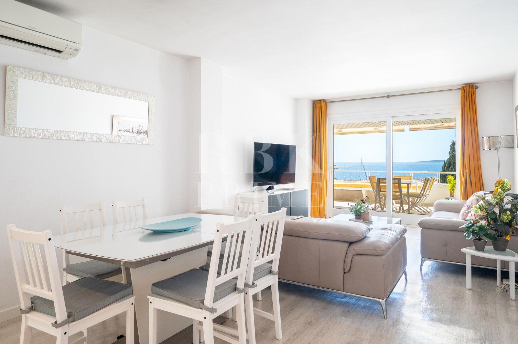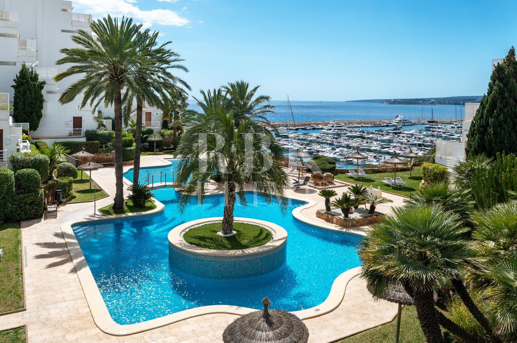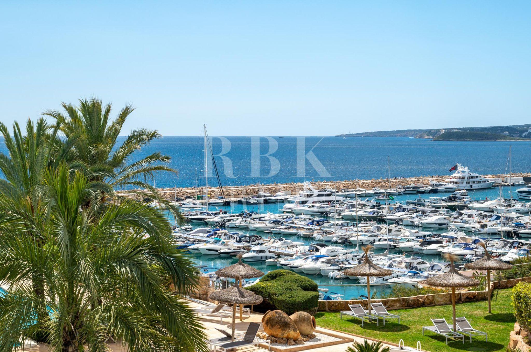 Exclusive seafront apartment for sale with stunning panoramic views in Portals Nous, Mallorca. The property has a floor area of 108 m² and a spacious 32 m² terrace, ideal for enjoying the Mediterranean climate, the harbour and the swimming pool in a privileged setting. It comprises 2 bedrooms, 2 bathrooms (one en suite), a bright living room and a fully equipped kitchen, all designed to offer comfort and functionality. It is fitted with hot/cold air conditioning in all rooms, ensuring year-round comfort. It includes a private parking space within an exclusive residential complex with direct access to the harbour and the beach. An unbeatable location, just a minute from the centre, surrounded by restaurants, boutiques and high-end amenities. Ideal as a primary residence, second home or investment in one of the most sought-after areas of Mallorca. A unique opportunity to enjoy the authentic Mediterranean lifestyle with all the comforts.