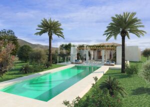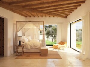 Exclusive newly built luxury rustic finca for sale in San Lorenzo, Mallorca. This impressive property in Ibizan style, designed by a renowned architect, offers maximum comfort, privacy and exclusivity. With a living area of 453 sqm, it is situated on a spacious plot of 43.600 sqm, surrounded by nature and serenity. The villa features its elegant open plan design on one level, perfectly integrated into the natural surroundings. The building materials have been carefully selected to respect the essence of the island, fusing tradition and modernity. The project has an impressive living room, which stands out with an elegant fireplace and a skylight that lets in plenty of natural light. It has 4 bedrooms, each with its own en suite bathroom, and 2 additional toilets. Outside, the property offers spacious garden areas, a private swimming pool and a parking area for 4 cars. It also has an exclusive wellness area with private gym, making it a true oasis of luxury and tranquillity. The images are renderings and the information provided corresponds to the developer's design.