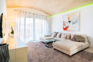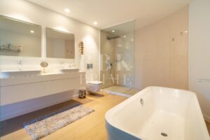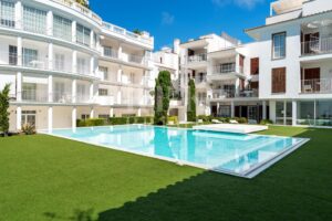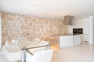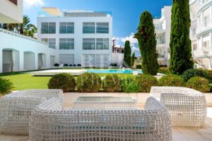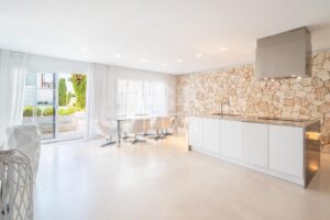 Stunning ground floor apartment for sale in Porto Cristo, Mallorca, located in an exclusive residential complex, combining modern design, comfort, and privacy. With a built area of 217 m², it has three spacious double bedrooms, two of which are en suite, as well as an additional bathroom. Natural stone and parquet flooring enhance the luxurious and spacious feel throughout. The open-plan living room, with 4-metre ceilings and integrates the living area, the open Nolte kitchen with central island, and the dining room, to create a bright and welcoming space. The living room opens onto a 70 m² south-west-facing terrace, with sun all day long, and direct access to the communal swimming pool, as well as the fitness area and sauna. Adjacent to the terrace is a practical laundry room, and the property includes an underground parking space with a storage room. Boasting an alarm system and high-quality finishes, this property is designed to maximise comfort and functionality. This property represents a unique opportunity for those seeking to live in an exclusive seaside setting with easy access to amenities, the marina and beaches.