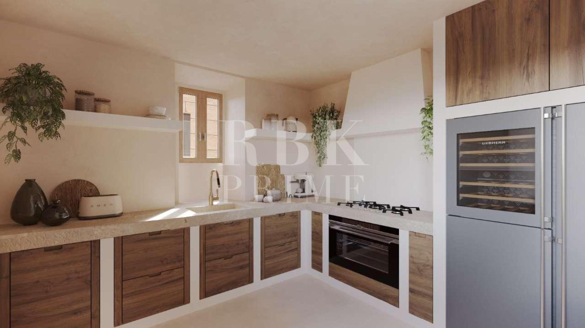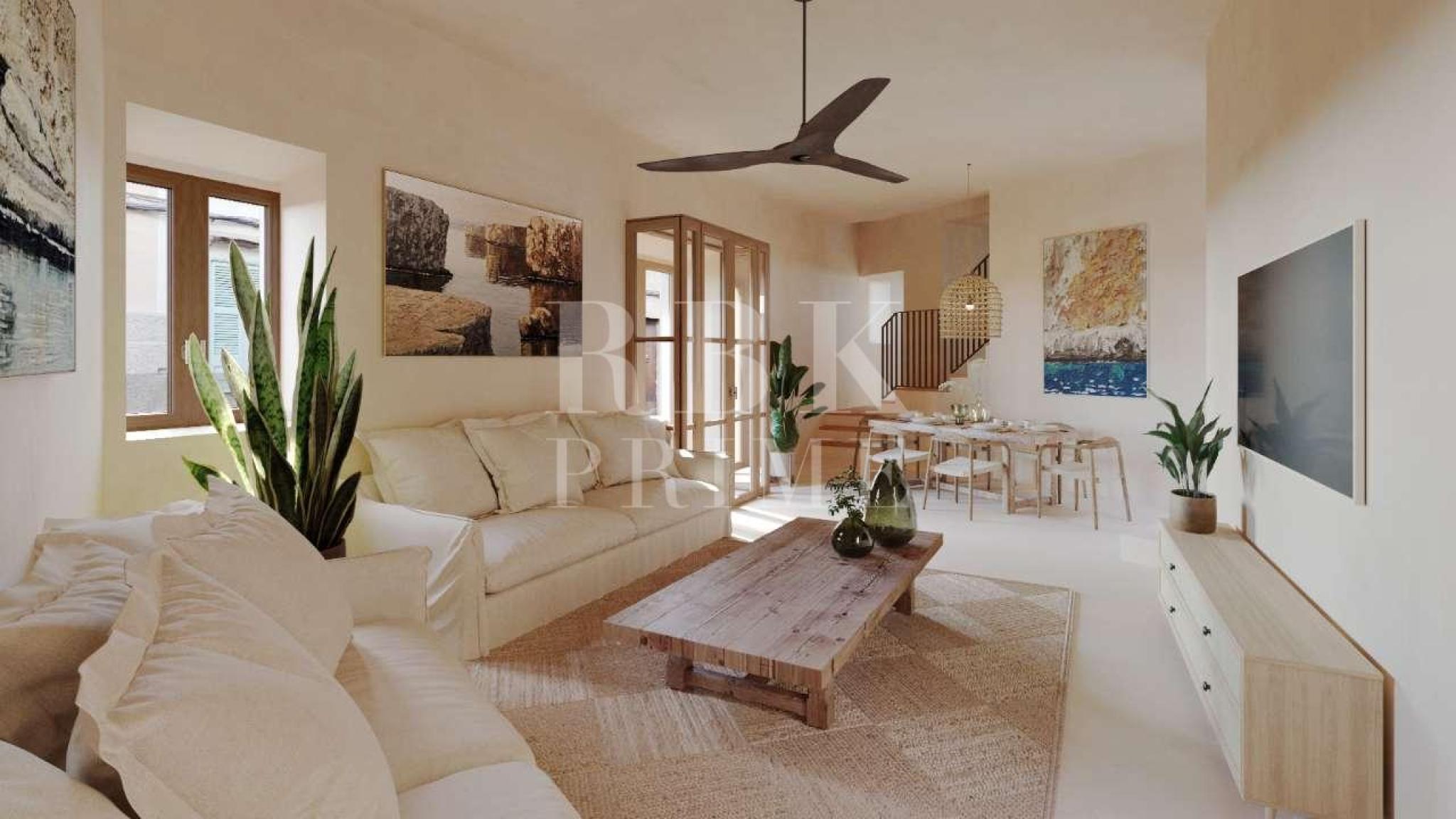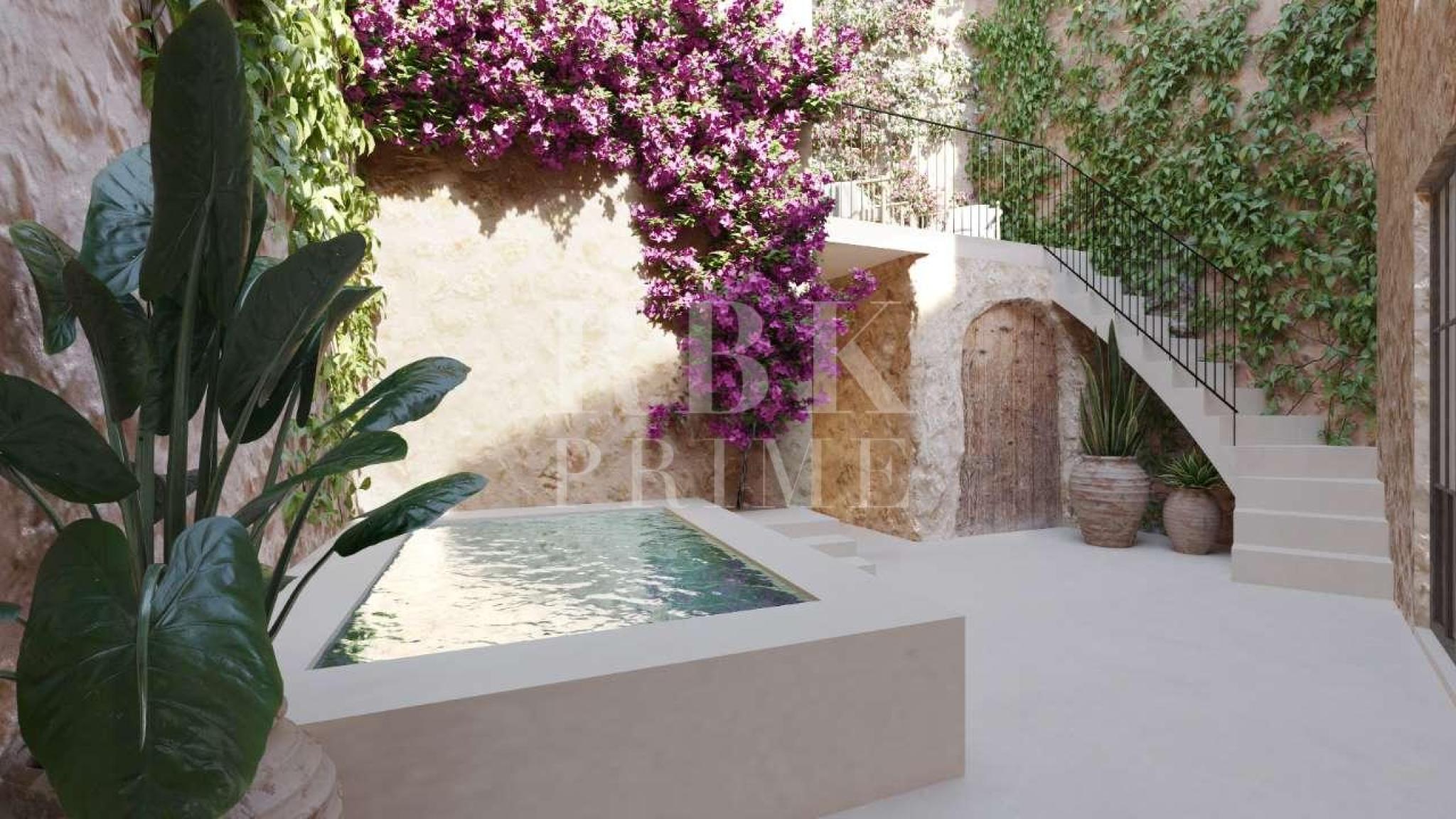 Village house to renovate with project and building licence for sale, in the historic centre of Artà, one of the most charming villages in Mallorca. The property is sold with a renovation project and building licence, allowing the buyer to start the renovation immediately without additional paperwork. According to the approved project, the house is distributed over two floors. The ground floor will feature a bright living room with an integrated kitchen, a full bathroom and a garage with space for one vehicle. A large window will connect to the 43 m² interior courtyard, where the swimming pool will be located, providing space, light and natural ventilation. The first floor will have three double bedrooms, each with its own en-suite bathroom, ensuring privacy and comfort. A unique opportunity to enjoy life in the historic centre of Artà, combining the charm of Mallorcan architecture with the comfort of a modern project that is already planned and ready to be executed. The images shown are renderings of the project, to illustrate the final result of the renovation.