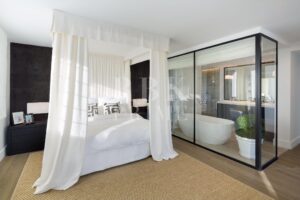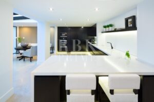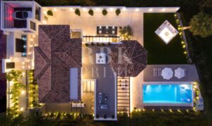 Exclusive villa for sale in the prestigious Golf Valley of Nueva Andalucía (Málaga) and boasts a built area of 553 m² on a large plot. It offers open views of the golf course and the surrounding mountains. The property offers 5 en-suite bedrooms, elegantly distributed for privacy. Its Andalusian-inspired architecture incorporates a unique design with a central living area and open spaces connecting the living room, dining room, and kitchen, creating a sophisticated and bright atmosphere. The interiors stand out for their contemporary style, with neutral tones that reinforce the calm and integration with the natural environment. Outside, large terraces, an outdoor dining area and a relaxation area with a sunken fireplace and sunbathing spaces redefine the Mediterranean lifestyle. The 95 m² rooftop solarium steals the show with its spectacular panoramic views of the valley. The villa also features a private cinema, a wine cellar and a games room, ensuring that luxury, comfort and entertainment are in perfect harmony.