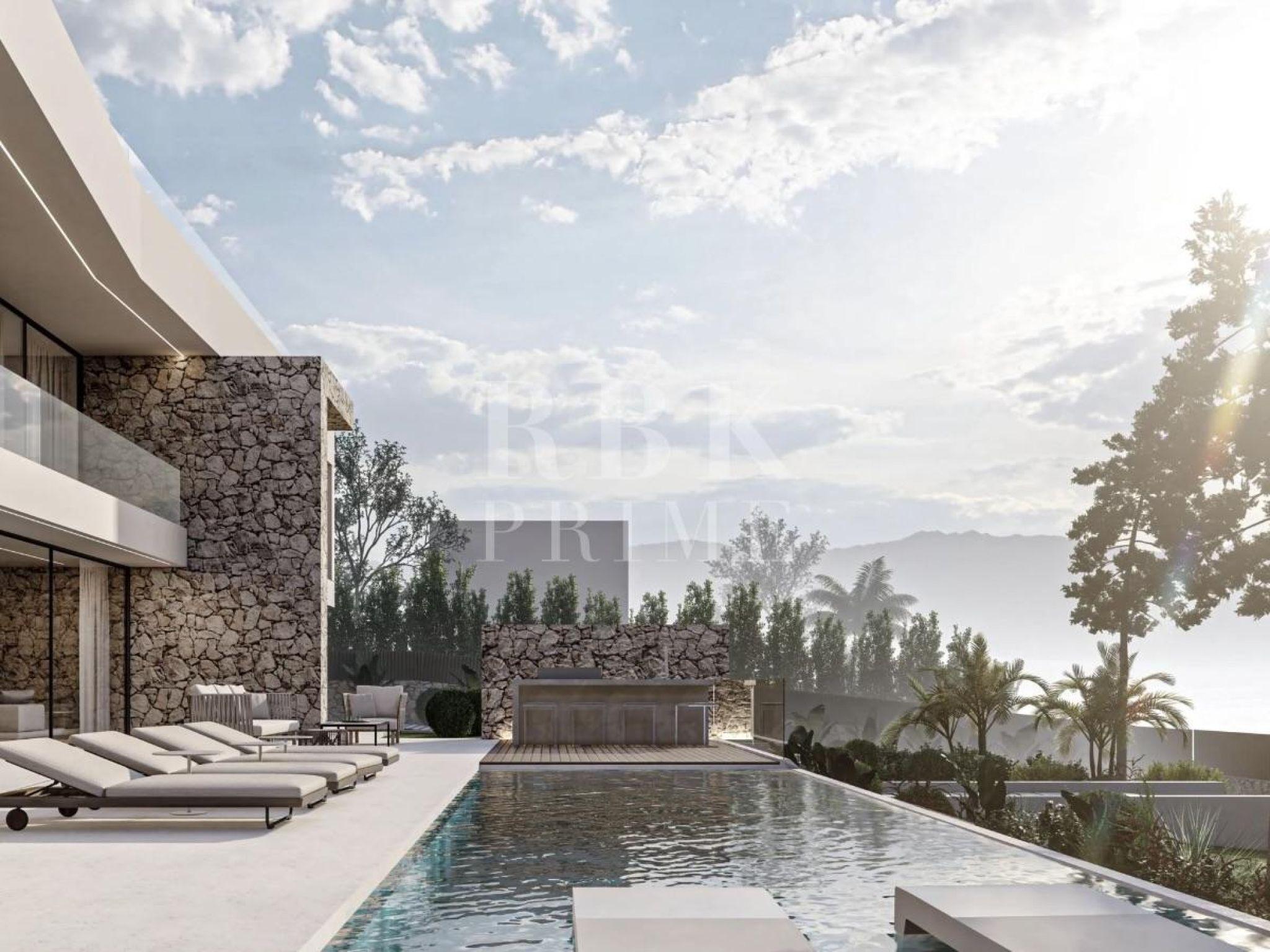 Exclusive and stunning luxury villa for sale with about 430 m² of living space located in Santa Ponsa, in the southwest of Mallorca. Its design makes an impact from the entrance: a majestic swing door of 6 metres hight under a porch covered in natural stone. The house is divided into three floors, connected by a lift, and decorated with noble materials such as marble, wood and local stone. On the first floor, a large living room with fireplace, dining room and kitchen are integrated into a bright space, along with a double bedroom en suite, an office and a toilet. Upstairs there are 3 bedrooms en suite with dressing room and large terrace, including a master suite with super luxury bathroom and private terrace. There is also a multi-purpose living room that can be converted into an additional bedroom. The basement is dedicated to wellness: spa, sauna, Turkish bath, indoor pool, gym and cinema room. Outside, there is a terrace with a 40m² swimming pool, Jacuzzi, Mediterranean gardens and outdoor kitchen. The house has underfloor heating and a state of the art KNX home automation system. Located in a privileged enclave that combines the sea, nature and high quality services such as beaches, field golf and a prestigious yacht club, this property redefines comfort and elegance.