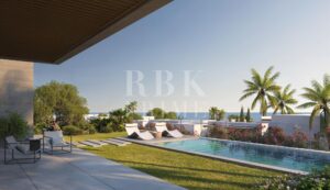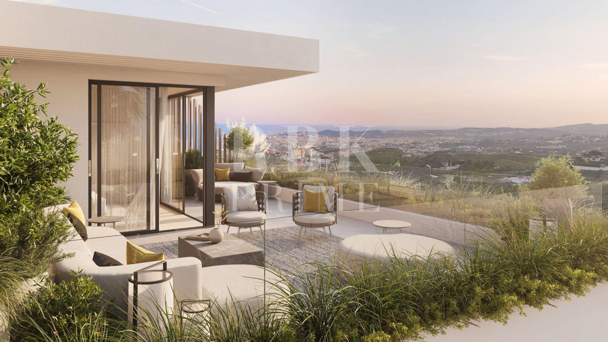 Exclusive new build villa for sale in Mijas, Costa del Sol (Málaga). The property is located in an exclusive residential complex in an elevated area with a natural setting, just a few minutes from the sea. The villa features 5 bedrooms and 5 bathrooms, with an approximate built area of 399 m², as well as a spacious covered porch of 81 m², private swimming pool and garden, ideal for enjoying the Mediterranean climate and sea views. It is delivered with a fully equipped Italian kitchen with integrated appliances, fitted wardrobes and fully finished bathrooms, as well as three private parking spaces. It also offers the option to install a lift. The villa is distributed over two main floors plus a habitable basement with an additional area including a living room, bedroom, bathrooms, leisure space, storage room and laundry room. The communal areas include a shared swimming pool, gym, coworking space, social areas and landscaped gardens in a quiet and exclusive environment. Completion is scheduled for 2028. Images are renders and the information corresponds to the developer’s design.