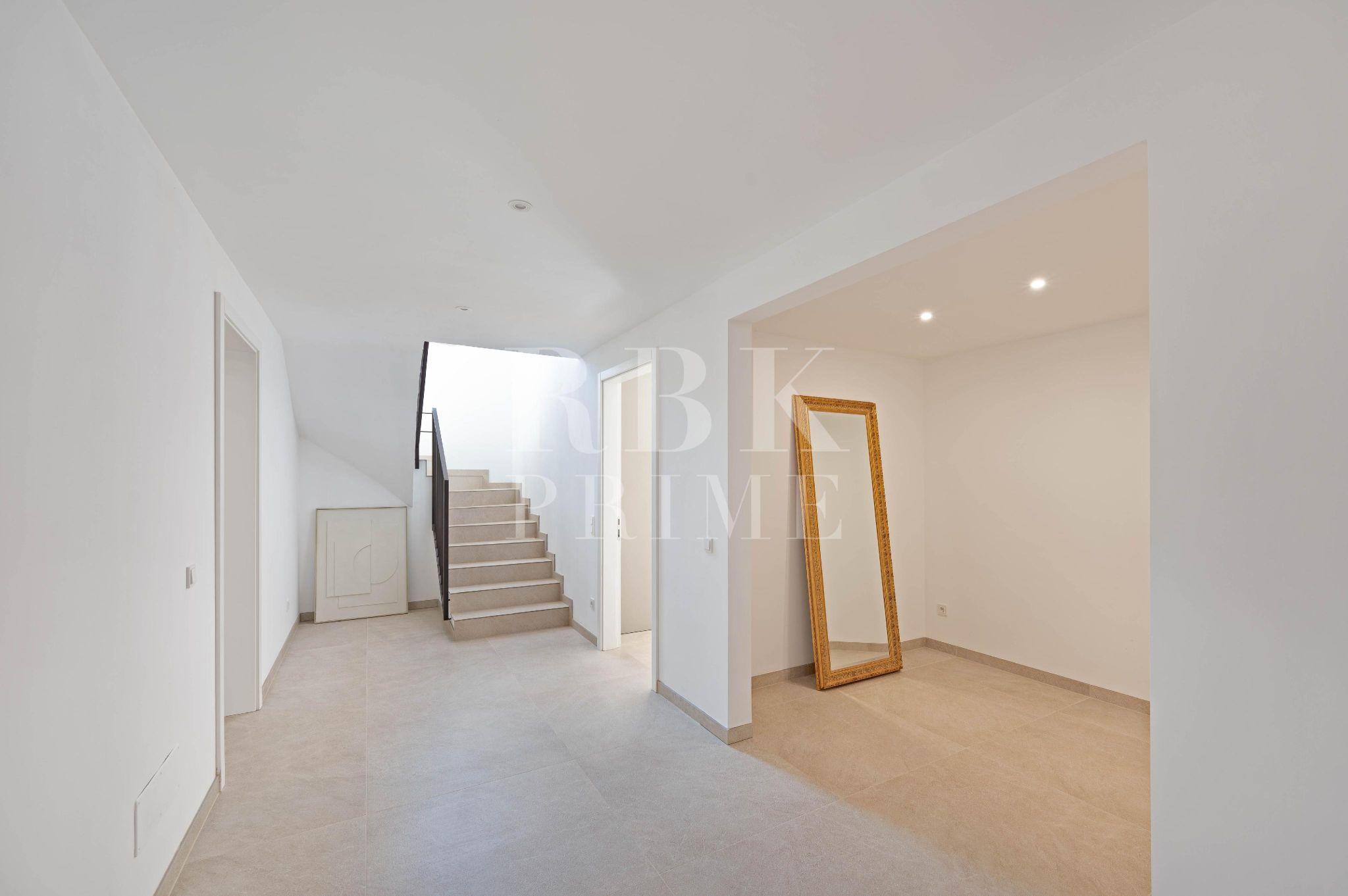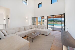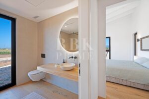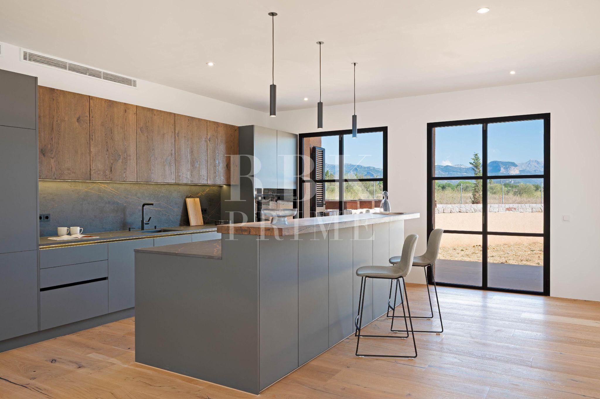 A newly built country property with views of the Sierra de Tramuntana in Santa María del Camí. The property sits on a 17,925 m² plot and offers 315 m² of living space and 645 m² of usable floor area, notable for its A energy rating and self-sufficiency thanks to a photovoltaic system with batteries. The interior features an open-plan design, high-end furnishings and four en-suite bedrooms, with the potential to add two further bedrooms. It includes KNX home automation, underfloor heating and heat pump air conditioning. The exterior features a saltwater swimming pool, an outdoor kitchen and an automatic irrigation system with a water tank. The multi-purpose basement includes a garage for four vehicles and space for a gym or wine cellar. Located fifteen minutes from Palma, the property offers maximum privacy, a ten-year guarantee and integrated security systems, combining rustic Mallorcan character with state-of-the-art technology and cost-efficient running costs.