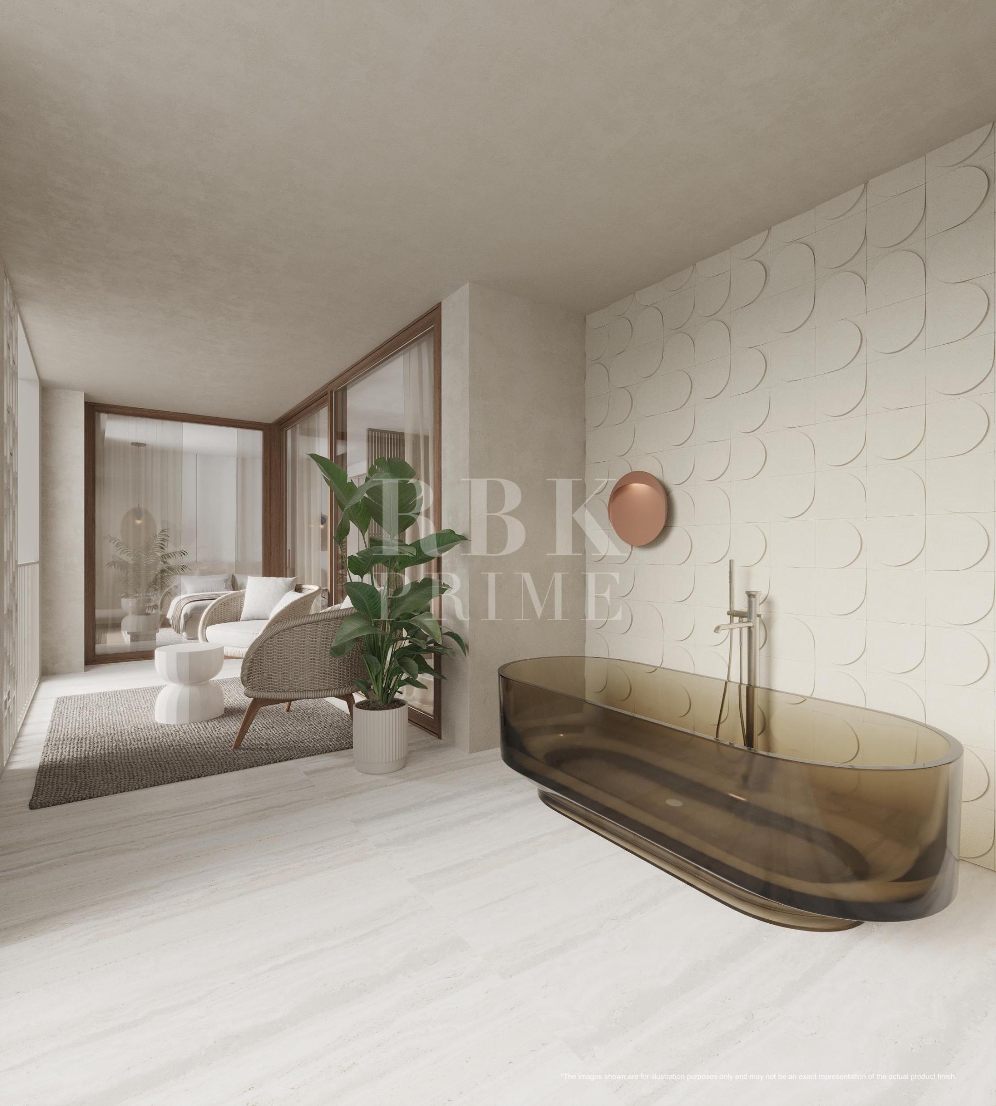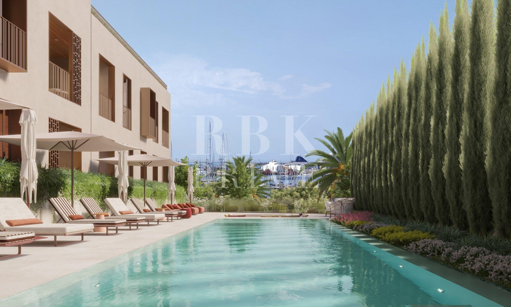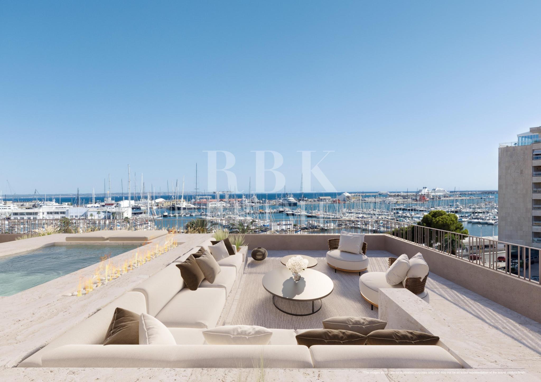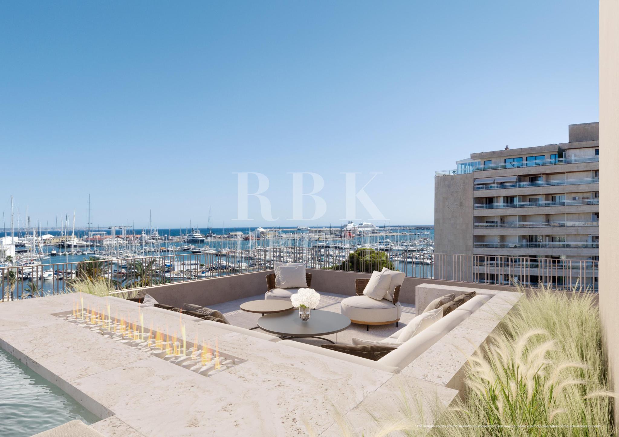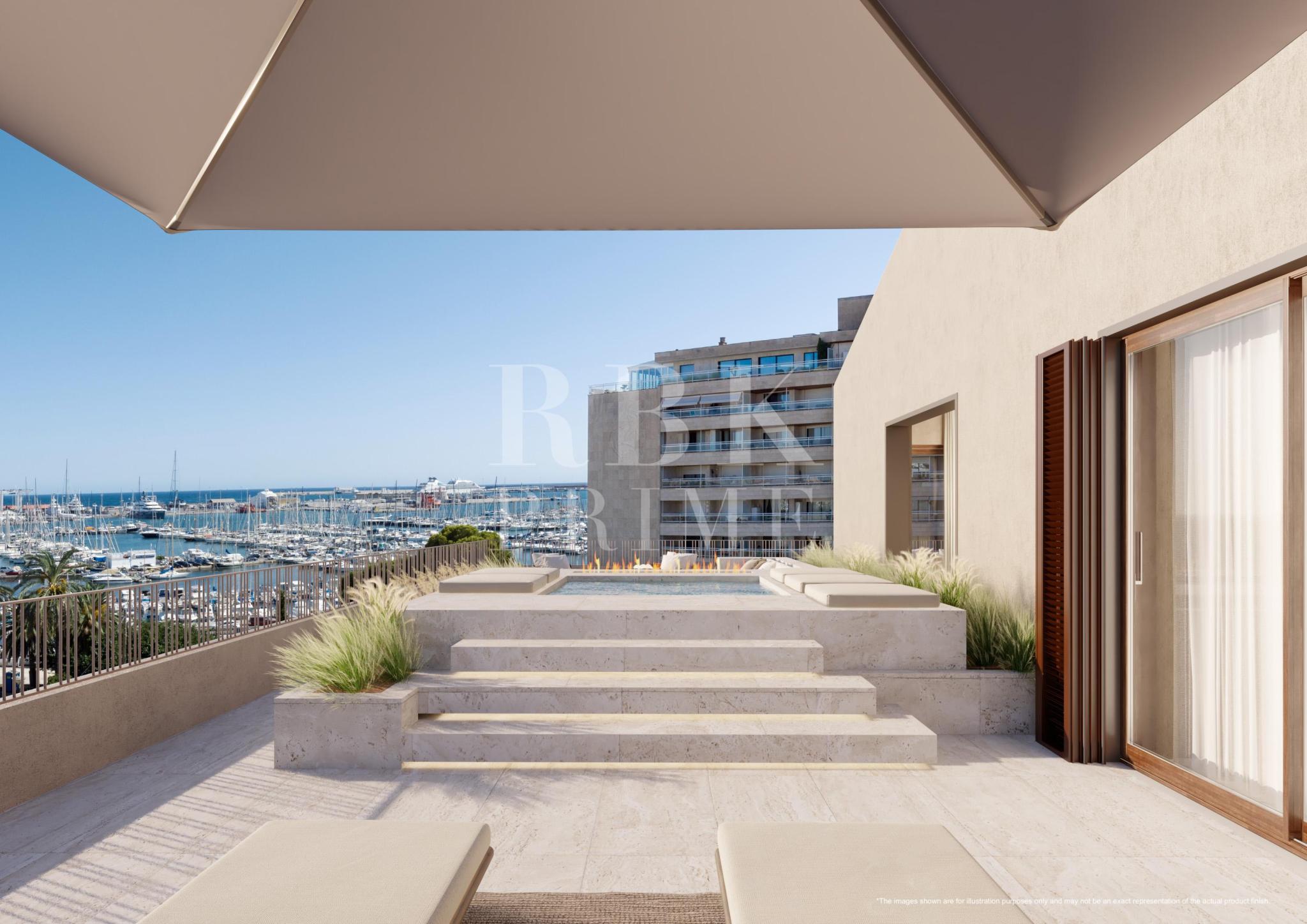 Spectacular new residential project for sale, located in a unique seafront location in the historic district of Es Jonquet, just a stone's throw away from Palma's idyllic Paseo Marítimo and the famous Santa Catalina district, Mallorca. ‘XO Jonquet’ offers 57 flats with 1, 2, 3 and 4 bedrooms, including spectacular penthouses with spacious terraces on top, ground floor flats with garden and private access to its own garage. The flats range from 120 m² to 400 m², including a private villa of 850 m² and feature sophisticated design. The kitchens are fully equipped with Miele appliances. The project offers 2 complete lines of interior design, which gives a sense of individuality, using the best quality materials. The complex offers selected amenities: outdoor areas with gardens, gym, 2 communal swimming pools (one outdoor with solarium and one indoor), spa, large communal lounge with wine cellar, golf simulator, 24 hour security and concierge service, communal electric boat and car, pet grooming, chauffeur service, chef and private events, bicycle area and booking service (leisure activities, restaurants, yachts).