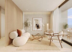 This compact and comfortable newly-built luxury flat for sale is located in a residential complex in Nou Llevant, Palma de Mallorca, just a 10 minutes' drive from the airport and only a few metres from the exclusive harbour of Portixol. The flat offers a living area of 66 m², 1 bedroom and 1 bathroom en suite. The open plan kitchen integrates seamlessly with the living room, creating an ideal ambience and offering an optimised, multi-functional space with subtle sophistication. The large floor-to-ceiling glass walls maximise natural light and open onto a 63 m² terrace. The project offers 3 complete lines of interior design, giving a sense of individuality while using the highest quality materials. In addition, there is a convenient laundry room and a practical storage room. The communal areas include a gymnasium, a communal swimming pool, a spa, a large communal lounge, cafeteria, golf simulator, 24-hour security, alarm systems, and concierge service. The building has an underground garage with electric vehicle chargers and space for bicycles.