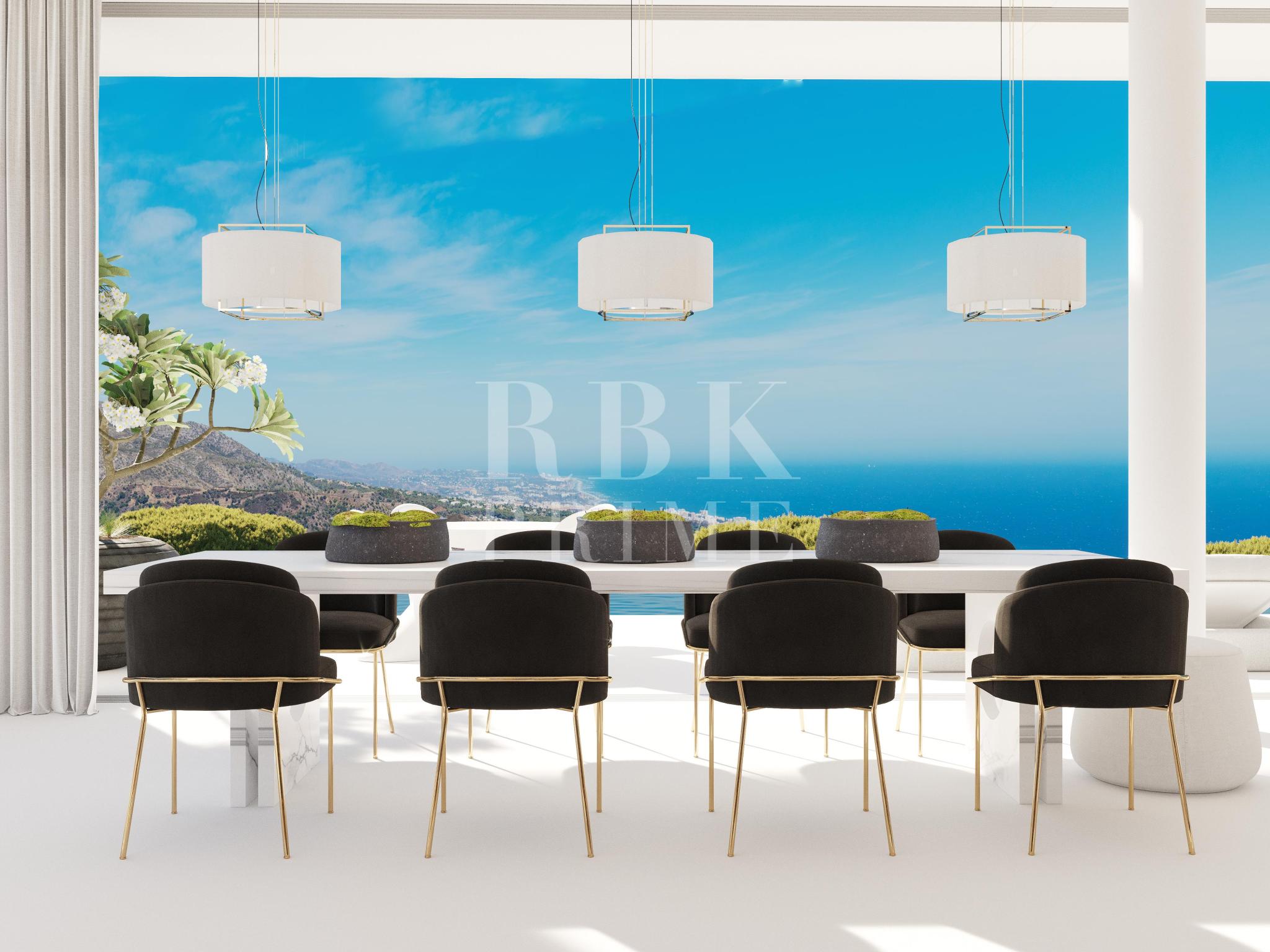 Exclusive, newly built villa for sale in the prestigious resort of Benahavís, Málaga. Spanning 530 m² and situated on a 2,347 m² plot, this property boasts breathtaking views to the southeast from the house and to the southwest from the garden. It offers unparalleled privacy and sweeping panoramic views of Marbella and the Mediterranean. The contemporary design blends seamlessly with nature, through floor-to-ceiling windows that disappear into the walls, creating the perfect indoor-outdoor connection. The ground floor comprises a bedroom, a bathroom, and an elegant living area with an open-plan kitchen, living room, and dining room with direct access to the terraces. On the first floor, there are two bedrooms, including the luxurious master suite with a dressing room, private lounge, and private terrace. The basement is a versatile space that could be converted into a cinema, gym, or guest apartment. The exterior features a large swimming pool, covered and uncovered terraces, a garden, and a carport for two vehicles. This unique residence combines design, functionality, and unparalleled views in a privileged location on the Costa del Sol. The images are renderings and the information provided corresponds to the developer's project.