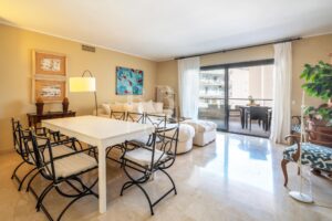 MINIMUM RENTAL PERIOD OF 6 MONTHS AND MAXIMUM 11 MONTHS. Penthouse for seasonal rental in first sea line, in El Terreno, only a few minutes away from the prestigious Club de Mar, exclusive shopping centre and the Parc de Castell de Bellver, Mallorca. This exclusive penthouse, fully furnished and equipped, offers a functional and bright distribution. It disposes of an independent kitchen, a spacious living-dining room with direct access to a private terrace, 3 bedrooms, one of them with bathroom en suite and an additional guest toilet. Furthermore, the residential complex has a communal swimming pool with solarium, ideal for enjoying the Mediterranean climate. As an added value, the property includes 2 underground parking spaces. Situated in one of the most prestigious and sought-after areas of Palma, this property enjoys unrivalled views of the sea and the marina. Its privileged location and functional design create a unique space, ideal for enjoying life on the island with maximum comfort.