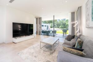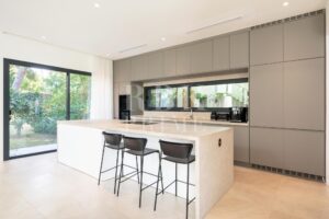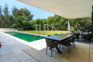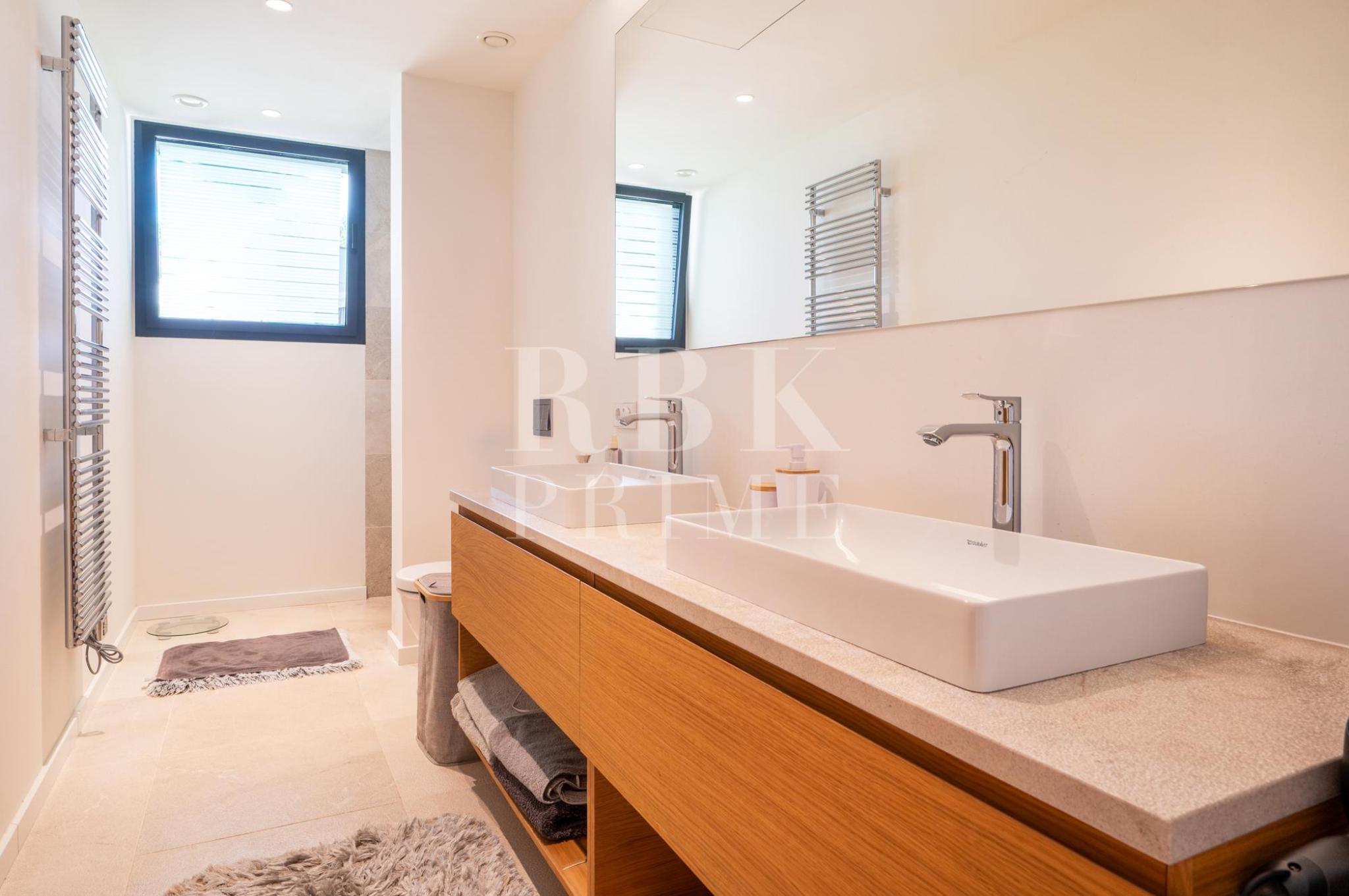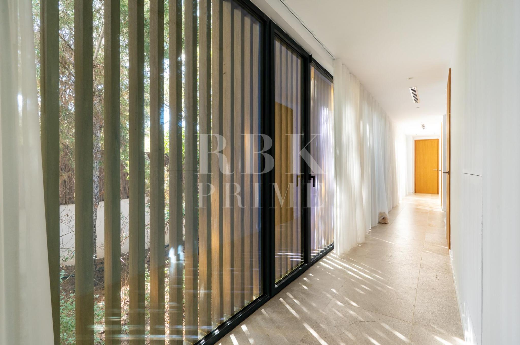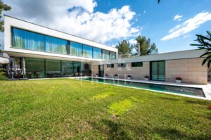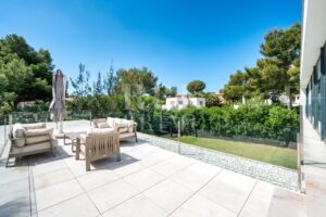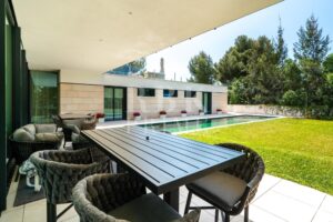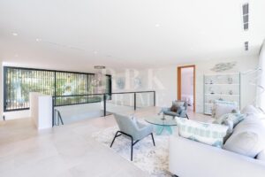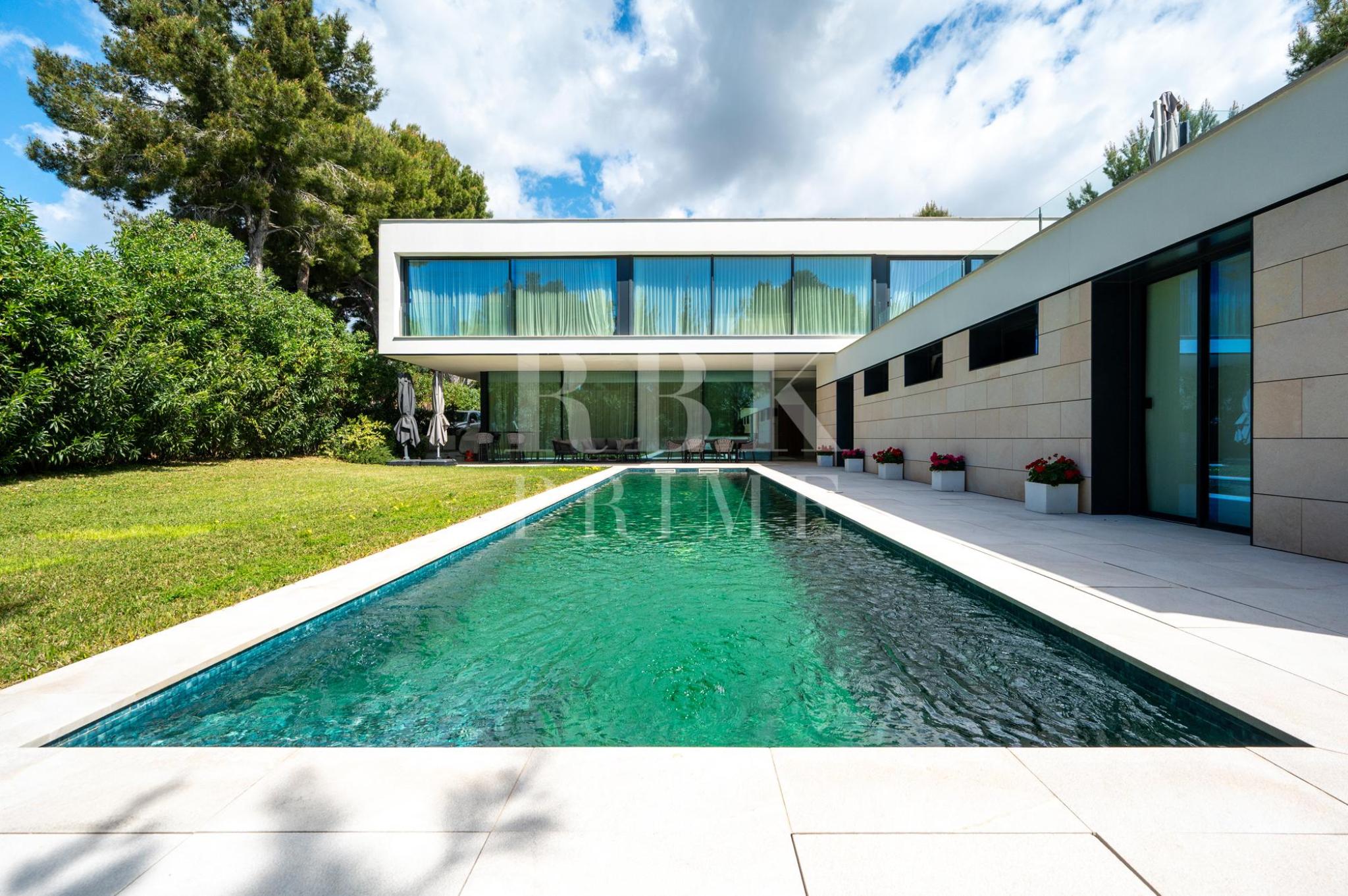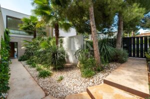 A spectacular modern villa situated in a highly sought-after area in the south-west of Mallorca, in Santa Ponsa. The property is spread over three floors, designed to be both functional and comfortable. The ground floor, with a floor area of 219 m², features a spacious living room with double-height ceilings, an open-plan kitchen-dining area, a TV room and two double bedrooms with en-suite bathrooms, as well as a utility room and a guest toilet. It connects to the outside via several porches totalling 51 m², ideal for enjoying the outdoors all year round. The first floor, measuring approximately 130 m² plus a porch with direct access from one of the bedrooms, houses the relaxation area with two double en-suite bedrooms and a lounge, ideal as a private or relaxation space. The basement offers a floor area of 223 m² and features a large versatile space, with an office and multiple possibilities: from a private gym and cinema room to any other use according to requirements. Outside, the property features a private garden, a 45 m² saltwater swimming pool and parking for 4–5 vehicles.
