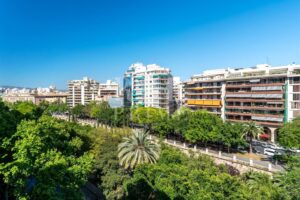 Exclusivo apartamento con parking y trastero en alquiler de larga duración en un innovador conjunto residencial en Paseo Mallorca, en pleno corazón de la ciudad, Mallorca. La vivienda cuenta con 2 habitaciones, una doble con baño en suite y otra individual, además de otro baño completo. El apartameto ofrece un amplio salón comedor con cocina integrada con electrodomésticos Miele, zona de lavandería con lavadora y secadora. Con materiales naturales y acabados de alta calidad como madera de nogal francés, suelos de roble y piedra natural de Binisalem, el apartamento transmite un estilo mediterráneo y contemporáneo único. Se encuentra en un edificio que incluye un patio interior ajardinado, una zona verde con cascada que refresca el ambiente, un spa, gimnasio y piscina interior climatizada. El edificio que destaca por su arquitectura sostenible, esta diseñado según los estándares Passivhaus, reduce en un 90% la necesidad de climatización, ofreciendo un coste energético muy bajo. La fachada, compuesta por paneles móviles de madera, crea un juego de luces y sombras, optimizando la captación solar durante todo el año. Es un oasis urbano que une confort, sostenibilidad y diseño exclusivo.