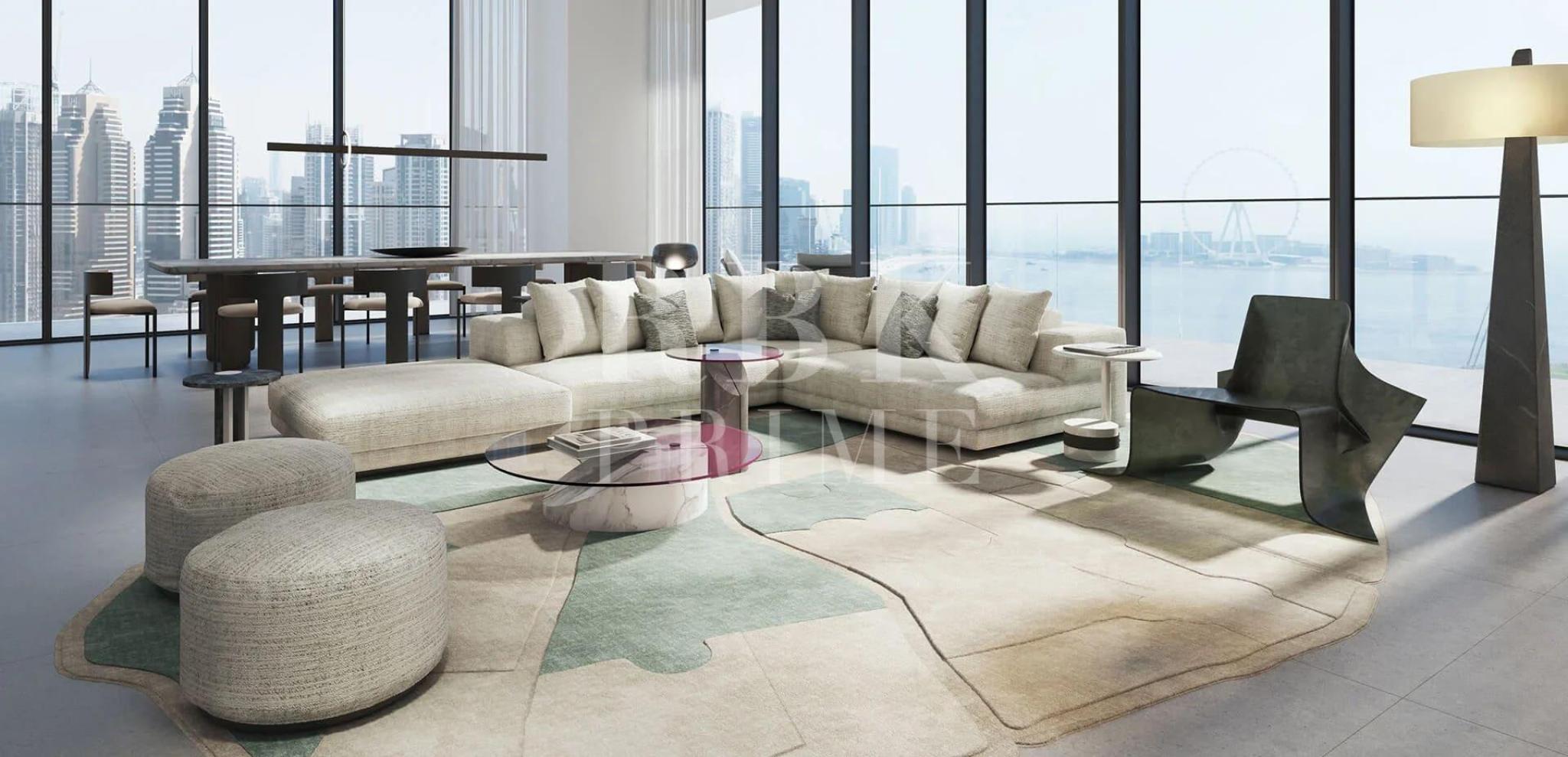 Fantástico apartamento de lujo de obra nueva en venta en W Residences, una exclusiva comunidad de tres torres que constituye una obra maestra arquitectónica futurista, construida con los materiales de más alta calidad. Ubicado en Dubái Harbour, un distrito frente al mar rodeado de icónicos lugares de interés. Con una superficie de 404 m², la propiedad cuenta con un amplio salón-comedor, 4 dormitorios con vestidores y baños en suite, y un aseo. La cocina independiente está completamente equipada con electrodomésticos de alta gama. Su espaciosa terraza de 91 m² ofrece impresionantes vistas de The Palm Jumeirah, Dubai Marina y Bluewaters Island, además de vistas al océano abierto. El apartamento también incluye un salón adicional, un estudio, una habitación con baño para el personal de servicio y una lavandería. W Residences ofrece a sus residentes una amplia gama de comodidades exclusivas: restaurante gourmet, bar en la azotea, jardines, piscina infinita de 200 m, zona lounge, sala de cine, sala de juegos, estudio de grabación musical, espacios de coworking, suites para invitados, gimnasio, spa, estudio de yoga y pilates, y un club infantil. El precio está sujeto a variaciones en el tipo de cambio de la moneda local respecto al USD.