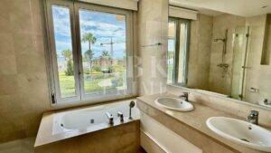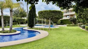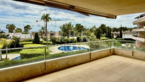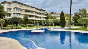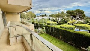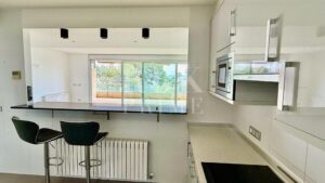 Este elegante apartamento en venta se encuentra en un complejo cerrado de una de las zonas más exclusivas de Mallorca, en Sol de Mallorca. Con una superficie habitable de 152 m², ofrece una combinación perfecta de confort, diseño funcional y un entorno natural privilegiado. La luminosa sala de estar, con ventanales de suelo a techo, se abre a una generosa terraza cubierta con vistas parciales al mar y a los cuidados jardines comunitarios. La propiedad dispone de 3 dormitorios con armarios empotrados, una suite principal con cuarto de baño y bañera de hidromasaje y un segundo baño completo con ducha. La cocina está totalmente equipada y dispone de una coladuría independiente. Entre sus características destacan los suelos de mármol, la calefacción central, el aire acondicionado por conductos y las ventanas de doble acristalamiento. El complejo ofrece una amplia piscina comunitaria rodeada de zonas de solárium y jardines cuidados meticulosamente, así como aparcamiento para residentes. Situado en una zona tranquila del suroeste de Mallorca, Sol de Mallorca es conocido por sus calas vírgenes, sus aguas cristalinas y su excelente conexión con el resto de la isla. Es ideal tanto para vivir como para pasar las vacaciones.