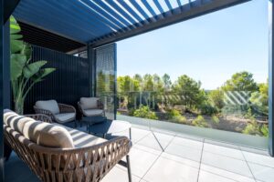 Espectacular ático en venta con vistas al golf en la zona de Son Vida, Mallorca. Este nuevo y elegante inmueble ofrece unos 142 m² de superficie habitable, además de 90 m² distribuidos en dos terrazas: una al nivel del piso y una azotea con impresionantes vistas. La vivienda cuenta con cuatro dormitorios, incluyendo un dormitorio principal en suite, así como un baño compartido y un aseo adicional. La propiedad está equipada con aire acondicionado por conductos y calefacción central a gas ciudad. Además, los baños cuentan con suelo radiante para un toque extra de lujo.. Entre sus características destacadas la propiedad ofrece acceso a una piscina comunitaria de agua salada, dos plazas de aparcamiento con punto de carga para coches eléctricos y un práctico trastero. Situado en un edificio de solo un año de antigüedad y con ascensor, este ático es perfecto para disfrutar de un estilo de vida moderno y confortable.