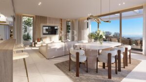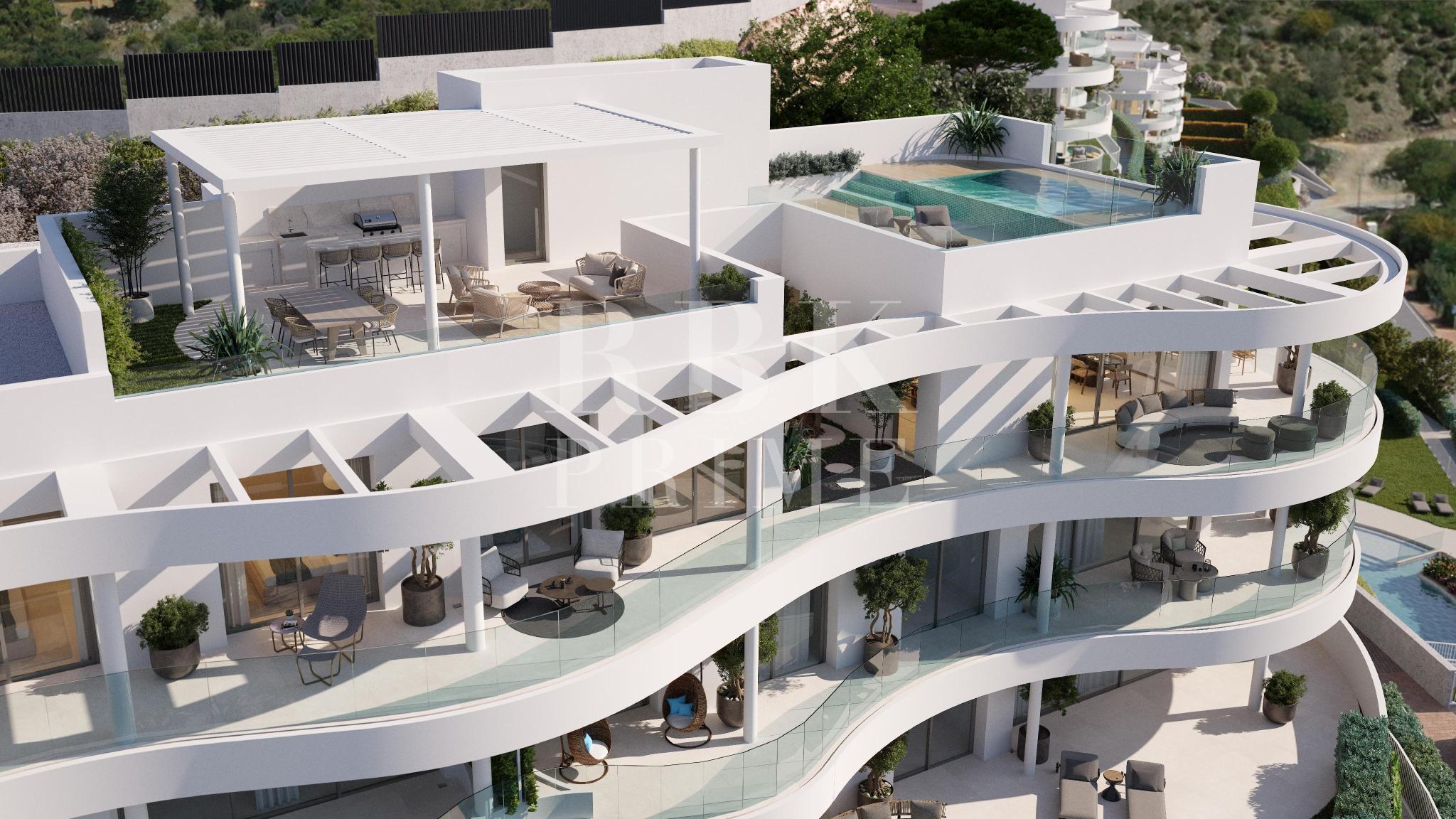Exclusivo ático de obra nueva en venta que redefine el concepto de vida de lujo en la Costa del Sol. Situado en una de las promociones más prestigiosas entre Marbella y Benahavís, combina diseño contemporáneo, amplitud y espectaculares vistas al mar Mediterráneo. Con 236 m² construidos en una sola planta, dispone de un luminoso salón-comedor con cocina de concepto abierto equipada con electrodomésticos Miele, y acceso directo a más de 260 m² de terrazas que rodean la vivienda. Cuenta con cuatro dormitorios con baño en suite, todos ellos con salida a la terraza, y destaca la suite principal, espaciosa y elegante, con un baño de diseño excepcional. También hay un aseo para invitados. En la planta superior se encuentra un impresionante solárium privado con piscina y cocina exterior, que ofrece el lugar perfecto para disfrutar del sol, la privacidad y las vistas abiertas al mar. Entre sus características se incluyen suelo radiante en toda la vivienda, dos plazas de garaje y un trastero. La urbanización cuenta con piscinas, zonas ajardinadas, gimnasio, spa y seguridad las 24 horas, y ofrece un estilo de vida exclusivo y sofisticado en una ubicación privilegiada de la Costa del Sol. Las imágenes son renders y la información corresponde al proyecto del promotor.