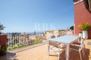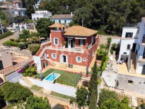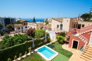 Casa tradicional en venta con vistas al mar, situada en una tranquila calle del residencial barrio de San Agustín. Distribuida en 2 plantas con 222 m² construidos sobre una parcela de 405 m², cuenta con dos salones, 4 dormitorios, 2 baños (uno en suite con vestidor), un aseo, cocina equipada, comedor independiente, lavandería, 3 dependencias para almacenaje, jardín y piscina. Frente al bosque de Can Tapara y con espacio abierto al sur, esta luminosa propiedad disfruta de gran privacidad y vistas despejadas al mar desde su terraza de 60 m² y destaca por su amplitud y techos altos. Dispone de calefacción por gas ciudad y carpintería de PVC. Incluye plaza de parking privada en edificio cercano y posibilidad de adquirir una segunda plaza adicional. Ubicación inmejorable, a pocos minutos a pie de las playas, del exclusivo puerto deportivo de Cala Nova y rodeada de todos los servicios necesarios: restaurantes, supermercados, farmacias y transporte público. Su excelente conexión con la autovía permite llegar en solo 5 minutos a Puerto Portals, en 10 minutos al centro de Palma y en 17 minutos al aeropuerto.