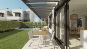 Este excelente y confortable chalet adosado de obra nueva en venta, con 200 m² construidos, se encuentra en Palma, Mallorca. Distribuido en dos plantas, en la planta baja destaca un amplio y luminoso salón-comedor que se abre al jardín, con dos terrazas y una piscina, ideal para disfrutar del clima de la isla. También se encuentra en esta planta una cocina abierta totalmente amueblada y equipada con electrodomésticos de alta gama, además de un aseo. En la primera planta se ubican los tres dormitorios dobles y dos baños, uno de ellos en suite. El dormitorio principal cuenta con un cómodo vestidor y una terraza privada. La casa dispone, además, de una azotea de 40 m² donde disfrutar de la brisa marina. Los espacios están diseñados para ser funcionales, agradables y confortables, incorporando sistemas de aerotermia, calefacción por suelo radiante, A/A por conductos, domótica, tomas de teléfono y TV/FM en salón, cocina y dormitorios, y videoportero. La propiedad incluye dos plazas de aparcamiento en superficie junto a la entrada, con preinstalación de carga para coches eléctricos. Las imágenes son rendres.