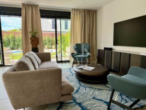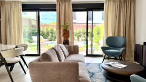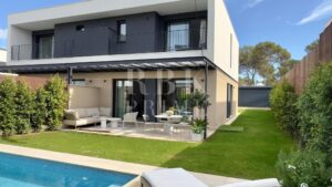 Este confortable chalet pareado de recien construcción en venta, con 163 m² construidos, está situado en un exclusivo residencial en Puig de Ros, Mallorca, en una zona tranquila con todos los servicios, a solo 10 minutos del aeropuerto y a 15 del centro de la ciudad. La propiedad totalmente amueblada se distribuye en dos plantas. En la planta baja destaca un amplio y luminoso salón-comedor que se abre a un jardín privado de más de 200 m² con piscina, ideal para disfrutar del clima de la isla. Esta planta también incluye una cocina totalmente amueblada y equipada con electrodomésticos de alta gama, una habitación que puede servir como despacho o dormitorio según las necesidades, una lavandería y un baño completo. En la primera planta se encuentran tres dormitorios dobles y dos baños, uno de ellos en suite. El dormitorio principal dispone de un cómodo vestidor y una terraza privada. La propiedad incluye dos plazas de aparcamiento en superficie junto a la entrada. La arquitectura de la vivienda prioriza la luz y los espacios, convirtiéndola en un lugar ideal para vivir todo el año. Su innovador sistema de construcción garantiza un confort excepcional y un ahorro energético notable.