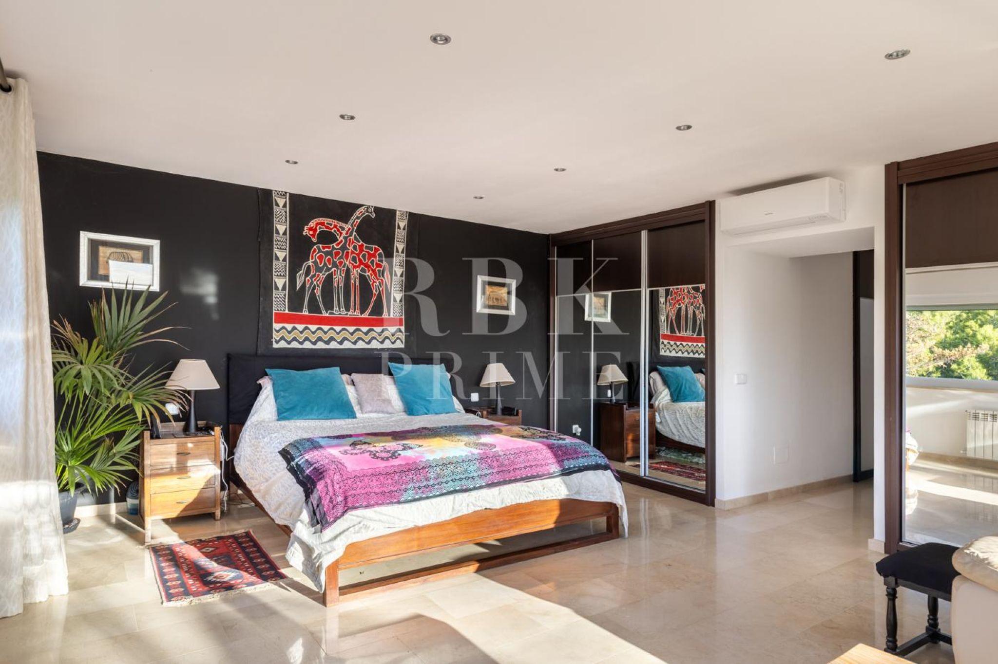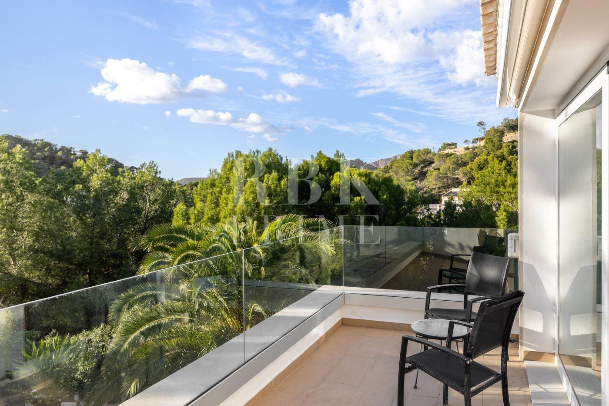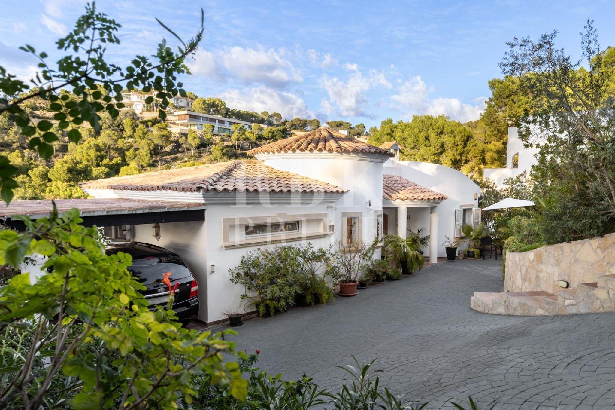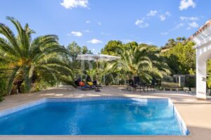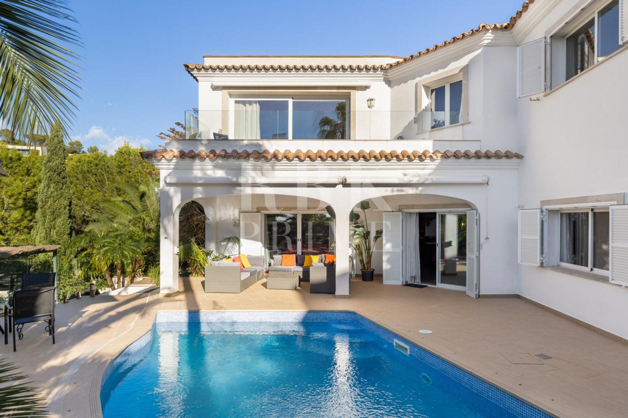 Encantadora villa en venta que combina a la perfección el confort contemporáneo con el encanto mediterráneo, ofreciendo un estilo de vida exclusivo en una de las zonas más codiciadas de Mallorca, Costa de la Calma. La planta baja alberga un elegante salón con chimenea, cocina moderna, dormitorio en suite y acceso directo a terrazas con piscina privada y jardines. En la planta superior, la lujosa suite principal y los dormitorios adicionales, todos con baño en suite, ofrecen privacidad, confort y panorámicas espectaculares. Construida en 2001 y modernizada con altos estándares de calidad, la propiedad destaca por sus espacios amplios y luminosos, un diseño de planta abierta y una conexión fluida entre interior y exterior. El chalet goza de tranquilidad absoluta, cercanía a playas, campos de golf, puertos deportivos y servicios de primer nivel. Con calefacción central, aire acondicionado, chimenea de gas y múltiples espacios exteriores, esta propiedad es ideal tanto como residencia permanente como inversión de alto valor, representando un auténtico refugio mediterráneo de lujo.
