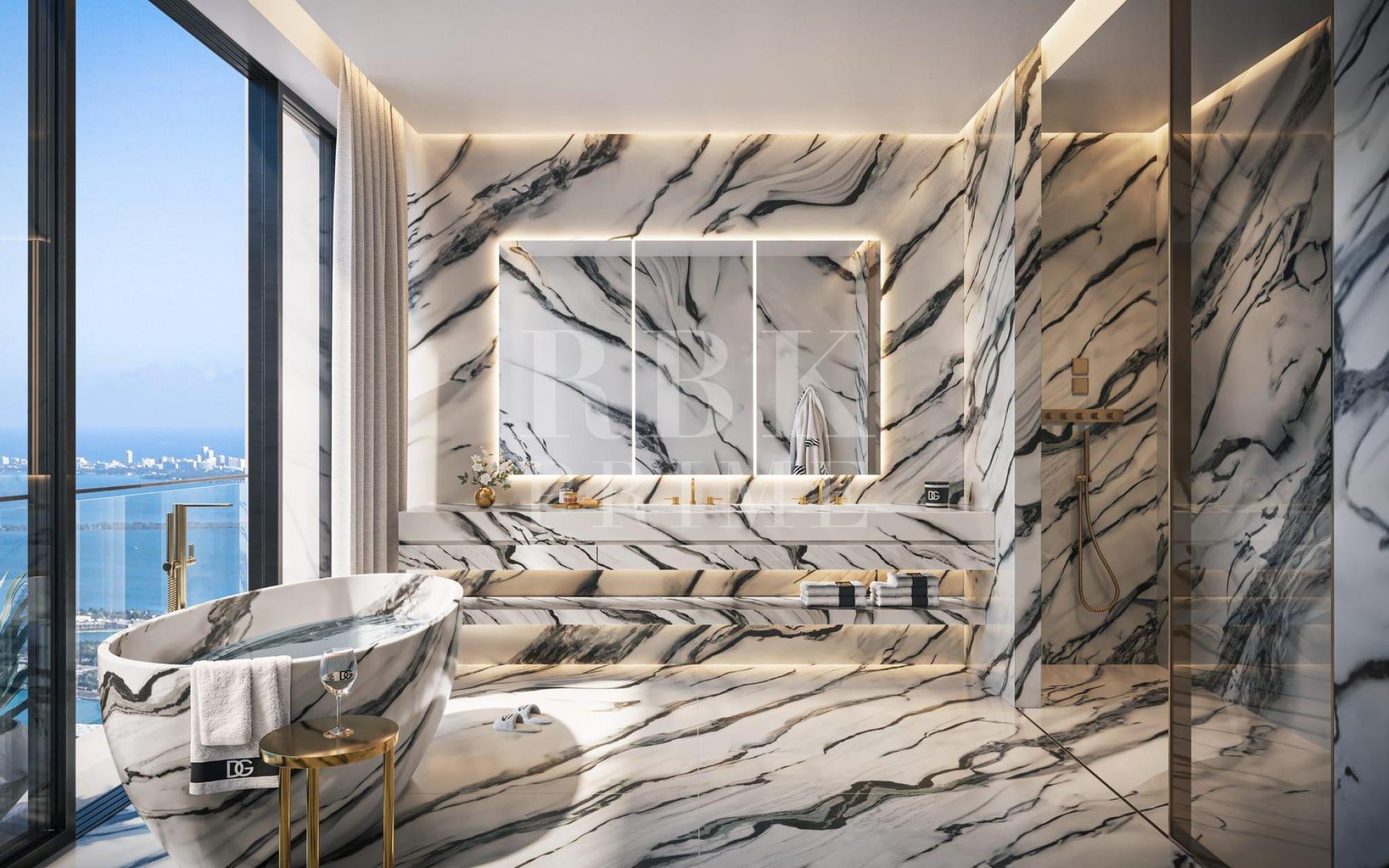 Exclusivo apartamento de lujo de obra nueva, totalmente amueblado, en venta en el majestuoso edificio 888 Brickell, ubicado en el centro de Miami y diseñado con el exigente ojo de Dolce&Gabbana. La torre y cada una de sus residencias encarnan el espíritu de la artesanía italiana conocido como Fatto a Mano. Los materiales seleccionados a mano en todo el mundo elevan el día a día, al tiempo que poseen el poder de la permanencia. Esta exclusiva vivienda de 98 m², con ascensor privado y vestíbulo de entrada, cuenta con techos de 3,35 metros de altura, 1 dormitorio con vestidor y baño en suite, y un aseo. La cocina abierta, diseñada por Dolce&Gabbana y completamente equipada con electrodomésticos Sub-Zero y Wolf, se fusiona a la perfección con el amplio salón que se abre a una terraza de 22 m², ofreciendo vistas incomparables. En 888, los residentes reciben hospitalidad hotelera de primera clase las 24 horas del día, junto con servicios exclusivos: restaurantes y bares, piscina de agua fría y caliente, piscina de entrenamiento, gimnasio, pista de pádel cubierta, pool bar y poolside lounge, billar y sala de juegos, sala de juegos para niños, espacio para eventos con escenario, salón de belleza y peluquería, servicio de aparcacoches.