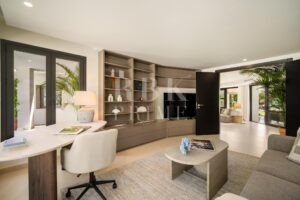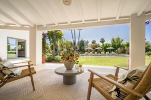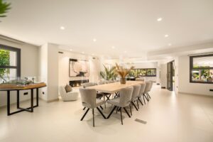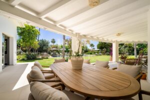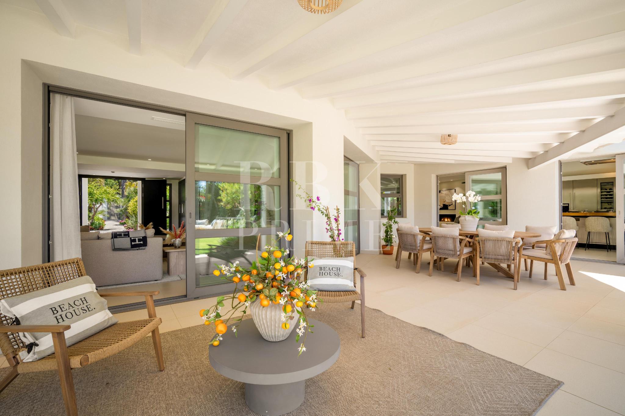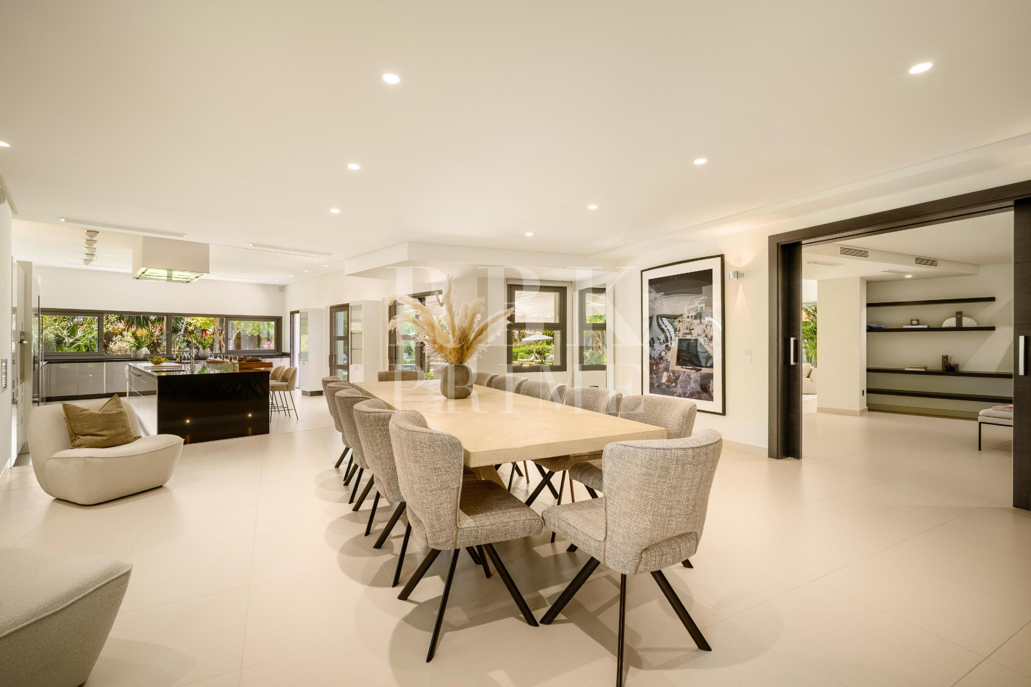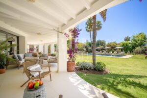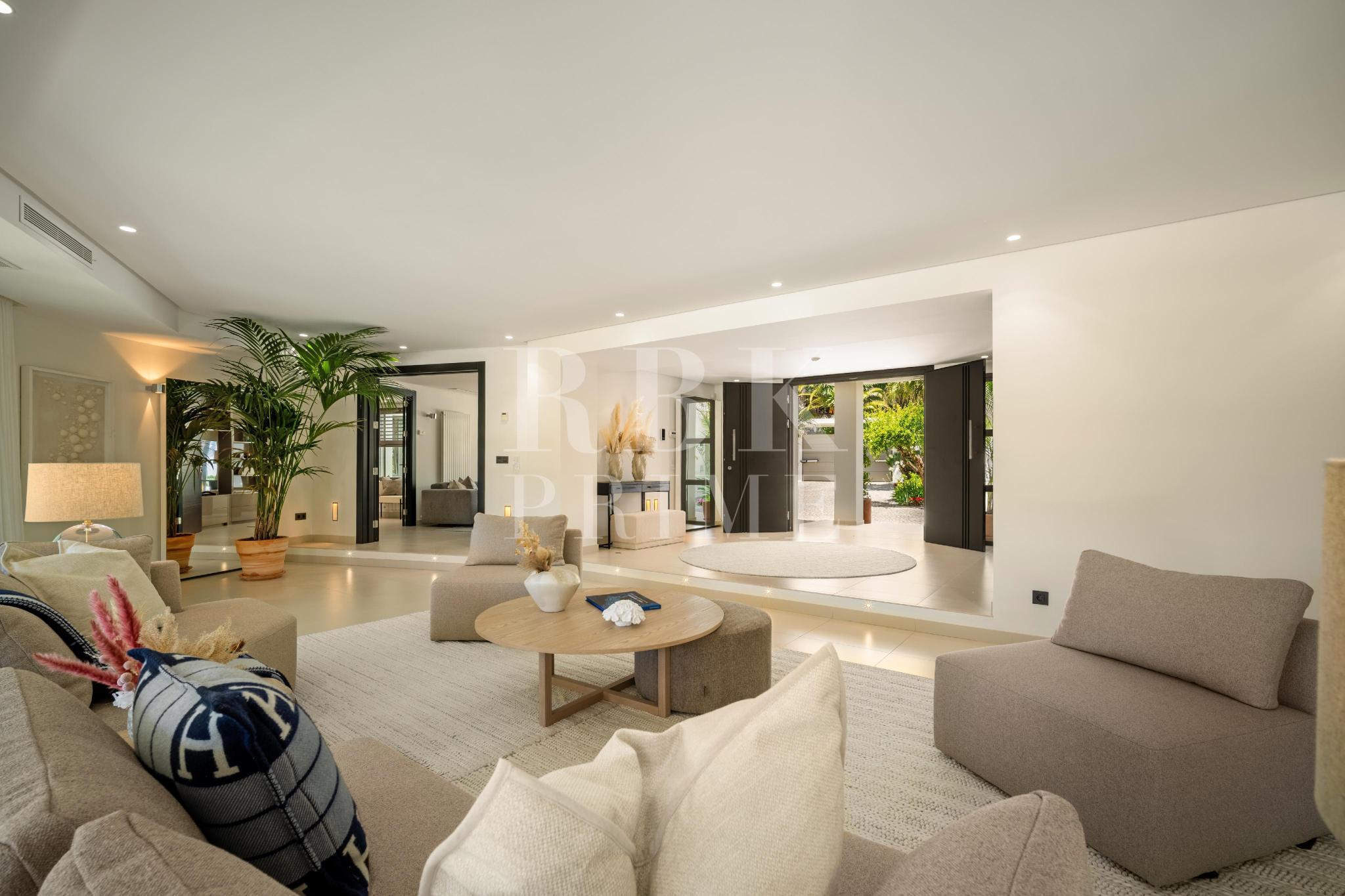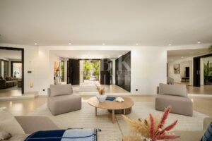 Exclusivo bungaló de lujo en venta, situado en una de las parcelas originales del prestigioso enclave de La Cerquilla, en Nueva Andalucía. Construida durante las primeras etapas del desarrollo de La Cerquilla, esta elegante villa de 603 m² de una sola planta está situada en una generosa parcela llana de 3.062 m², ofreciendo total privacidad, vistas parciales al golf y una envidiable orientación sur. Totalmente renovada en 2024, la villa combina a la perfección el encanto arquitectónico atemporal con el refinamiento contemporáneo. El interior consta de 5 espaciosos dormitorios en suite, un aseo de invitados, dos amplios salones, una elegante cocina Danespan con isla central, dos comedores, un despacho y una biblioteca. Otras características incluyen un garaje para 4 vehículos, ventanas de seguridad Technal, iluminación Lutron y un depósito de agua. Los jardines, profesionalmente ajardinados, exudan exuberancia y exclusividad, y crean un ambiente sereno para la vida al aire libre. Una terraza cubierta envolvente, una piscina de nueva construcción y espacios de vida de planta abierta proporcionan una conexión perfecta entre las zonas interiores y exteriores. Esta distinguida propiedad es una residencia emblemática que encarna la evolución de Marbella hacia un destino de lujo internacional de primer orden.