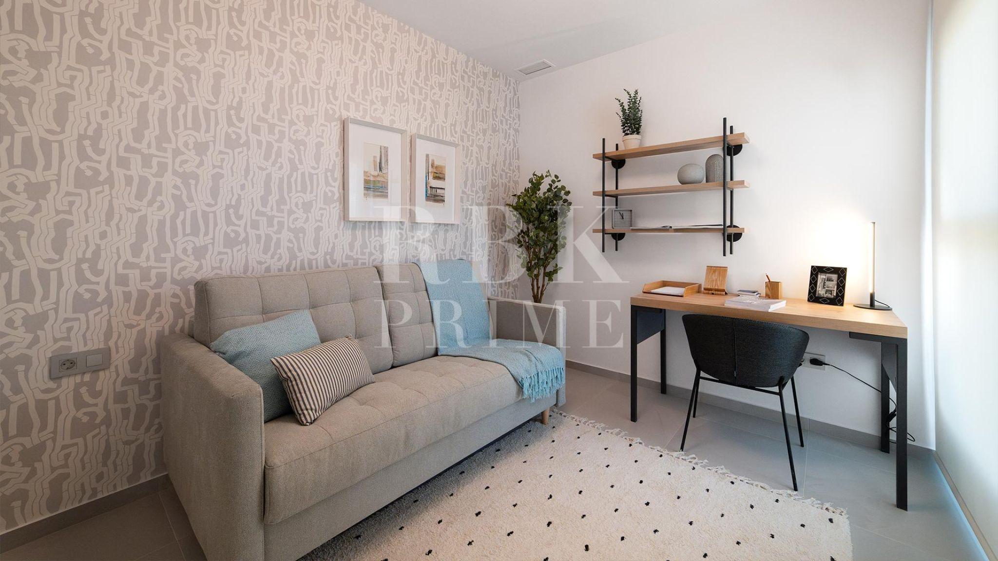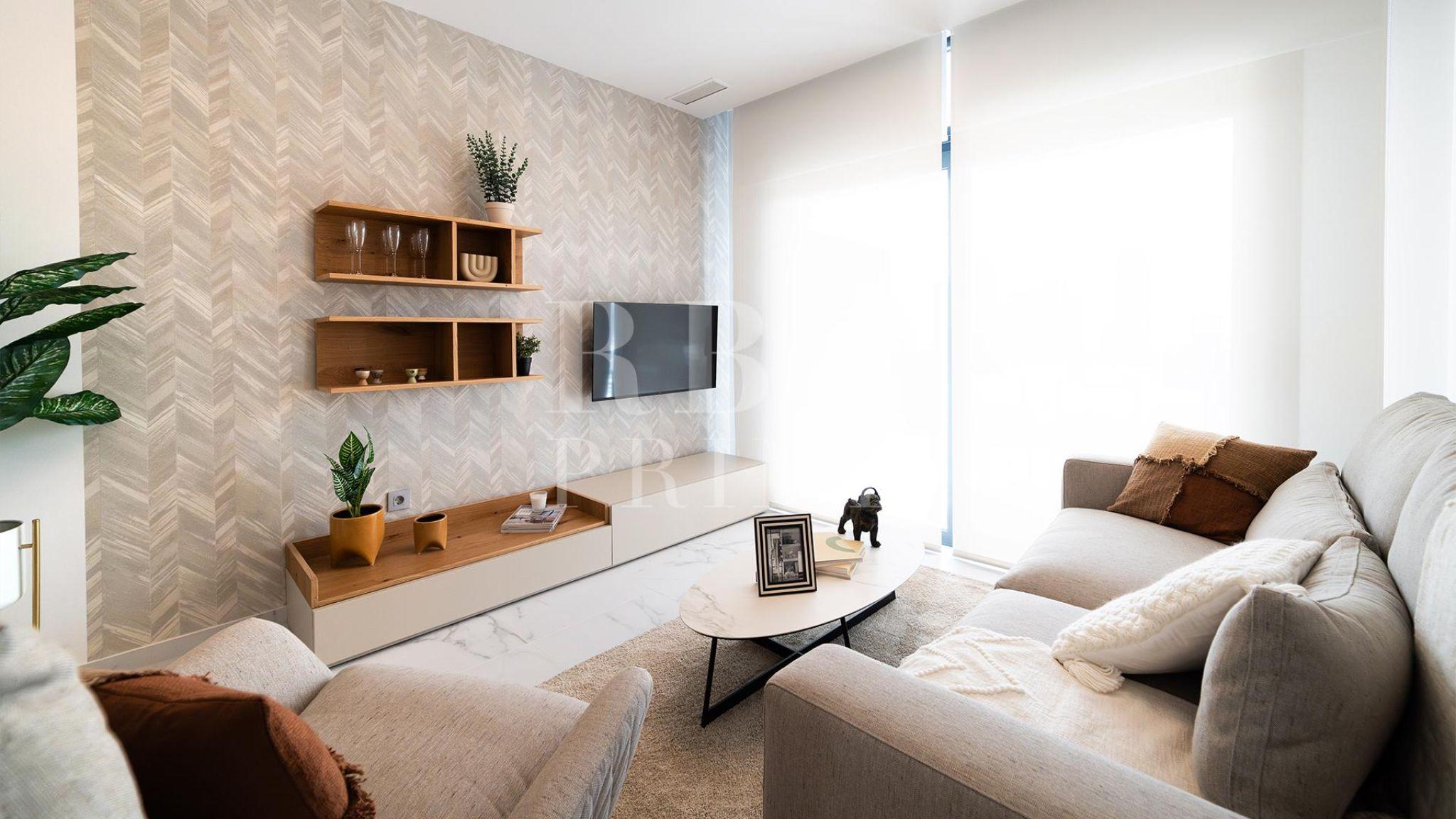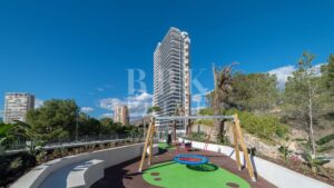 Exclusivo apartamento de obra nueva en venta con licencia turística, ubicado en un edificio de 108 viviendas que cumple todos los sueños en Benidorm, donde se fusionan el mar, el golf y la naturaleza. La vivienda de 3 dormitorios incluye plaza de aparcamiento y trastero, y ofrece amplias terrazas que permiten disfrutar de una excelente luminosidad y de vistas tanto al mar como al campo de golf Las Rejas. El residencial dispone de más de 5.400 m² de zonas comunes, con piscinas para adultos e infantil, jacuzzis, gimnasio panorámico, zona de juegos infantiles, área deportiva con aparcamiento para bicicletas y un mirador desde el que contemplar el paisaje. El complejo se integra en un entorno natural cuidadosamente diseñado, rodeado de zonas verdes con plantas aromáticas, flores y palmeras que aportan frescura y bienestar. A tan solo 30 minutos de Alicante, con aeropuerto internacional y estación de AVE, y rodeado de campos de golf y parques temáticos, ofrece una ubicación inmejorable para disfrutar del auténtico estilo de vida mediterráneo.