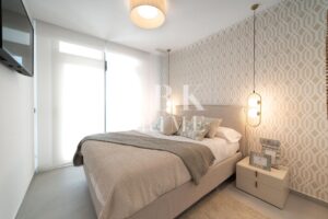 Exclusivo apartamento de obra nueva en venta con licencia turística, ubicado en un edificio de 108 viviendas que cumple todos los sueños en Benidorm, donde se fusionan el mar, el golf y la naturaleza. La vivienda de 2 dormitorios incluye plaza de aparcamiento y trastero, y ofrece amplias terrazas que permiten disfrutar de una excelente luminosidad y de vistas tanto al mar como al campo de golf Las Rejas. El residencial dispone de más de 5.400 m² de zonas comunes, con piscinas para adultos e infantil, jacuzzis, gimnasio panorámico, zona de juegos infantiles, área deportiva con aparcamiento para bicicletas y un mirador desde el que contemplar el paisaje. El complejo se integra en un entorno natural cuidadosamente diseñado, rodeado de zonas verdes con plantas aromáticas, flores y palmeras que aportan frescura y bienestar. A tan solo 30 minutos de Alicante, con aeropuerto internacional y estación de AVE, y rodeado de campos de golf y parques temáticos, ofrece una ubicación inmejorable para disfrutar del auténtico estilo de vida mediterráneo.