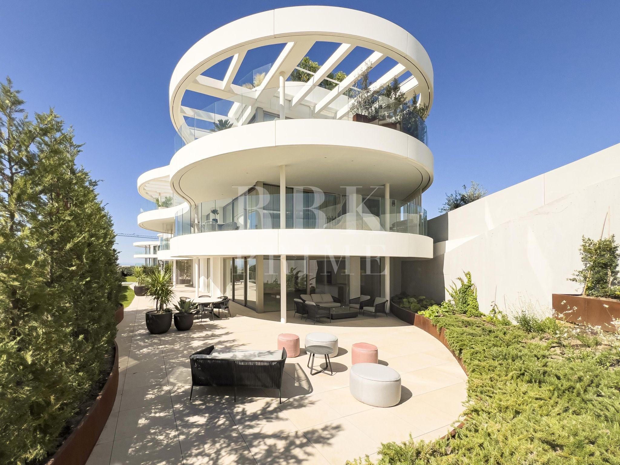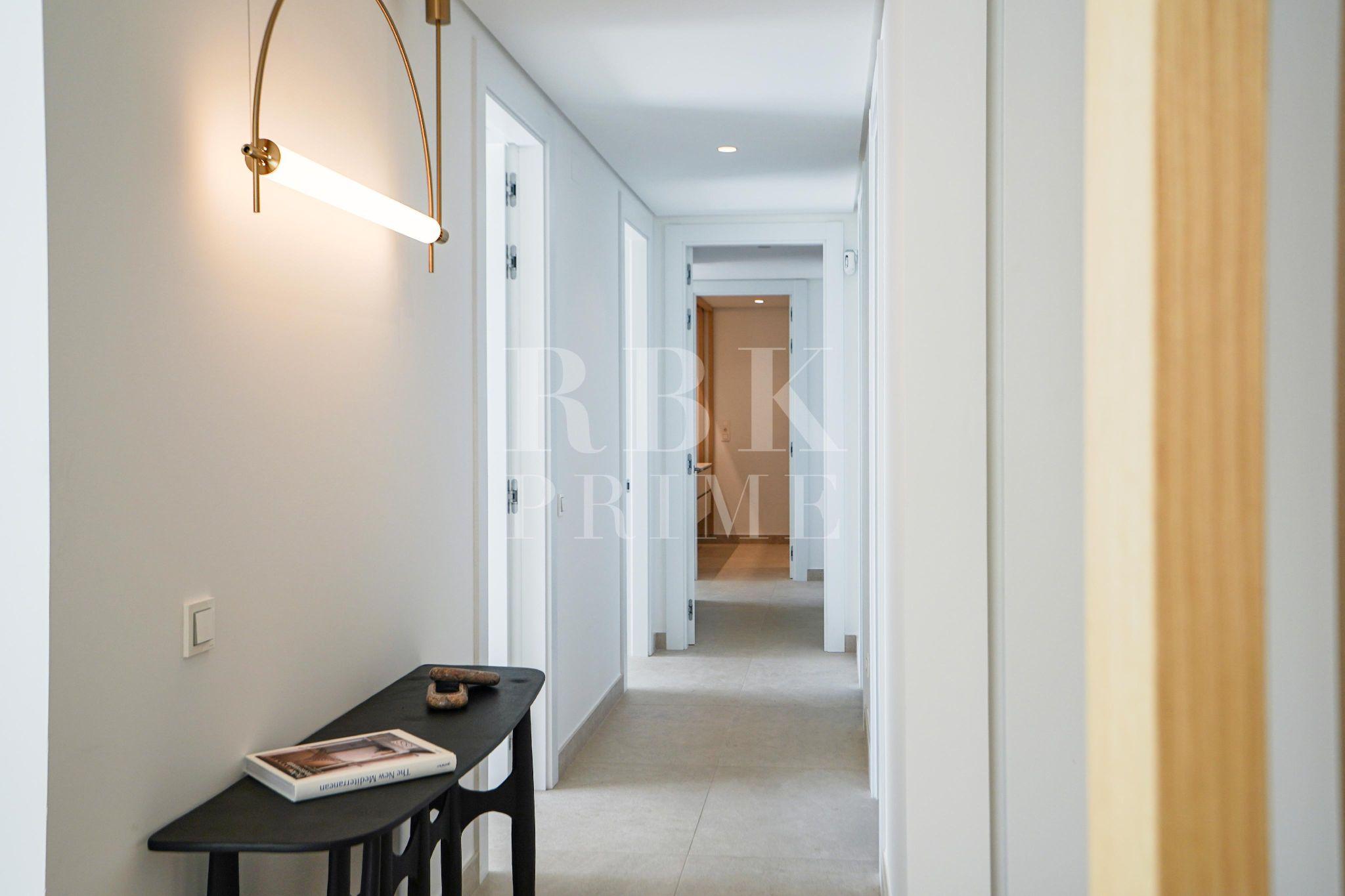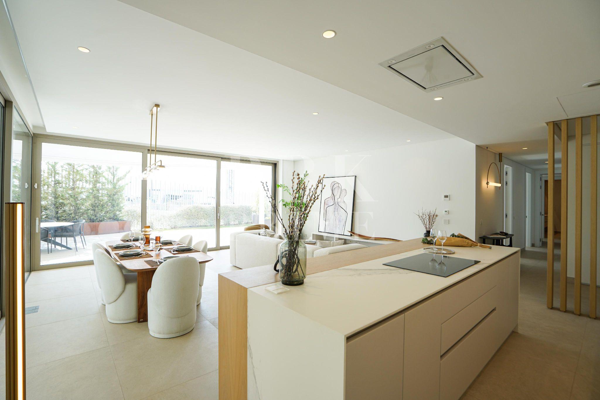 Exclusivo apartamento a estrenar en venta en planta baja, situado en una de las promociones más prestigiosas de la zona entre Marbella y Benahavís. Esta elegante promoción combina diseño contemporáneo, confort y vistas al mar, y ofrece un estilo de vida de lujo incomparable en la Costa del Sol. Con 174 m² de superficie interior y una gran terraza con jardín privado, la vivienda integra a la perfección los espacios interiores y exteriores, ideales para relajarse y disfrutar de las puestas de sol. El salón-comedor luminoso, con cocina de concepto abierto equipada con electrodomésticos Miele, se conecta directamente con la terraza y el jardín. Dispone de 3 dormitorios con baño en suite y un aseo adicional, destacando la suite principal por su amplitud y su elegante baño de diseño. La vivienda incluye suelo radiante en toda la vivienda, dos plazas de garaje y un trastero. Está lista para entrar a vivir y es la última vivienda disponible en la Fase I. La urbanización ofrece amenidades de 5 estrellas: piscinas interiores y exteriores, spa, gimnasio, health club, área de yoga y meditación, zona infantil, petanca, business centre y seguridad 24 horas. Se trata de una oportunidad única de inversión en una promoción boutique que redefine el lujo y la exclusividad en la Costa del Sol.