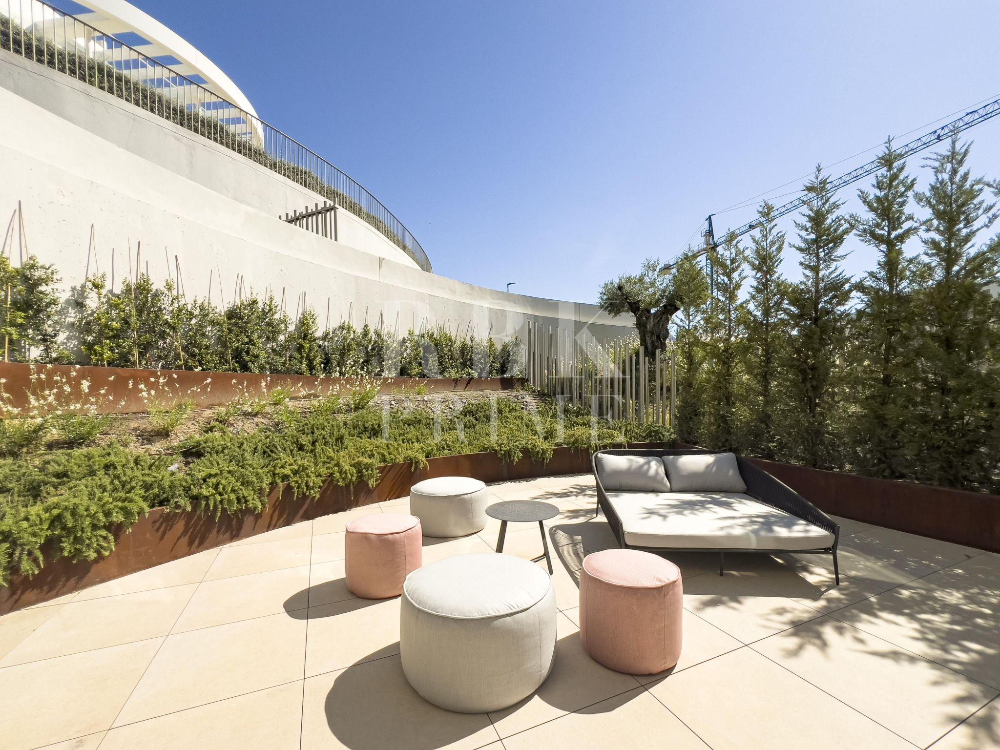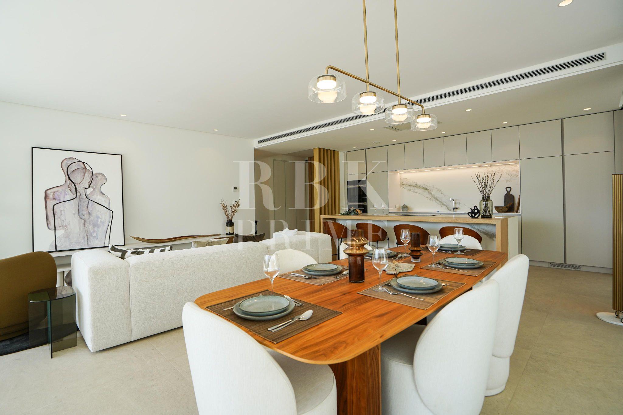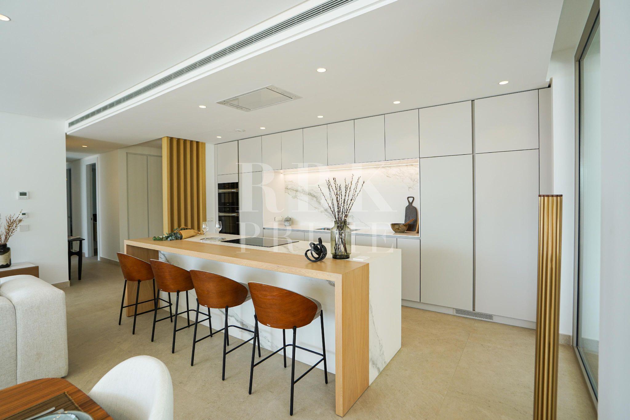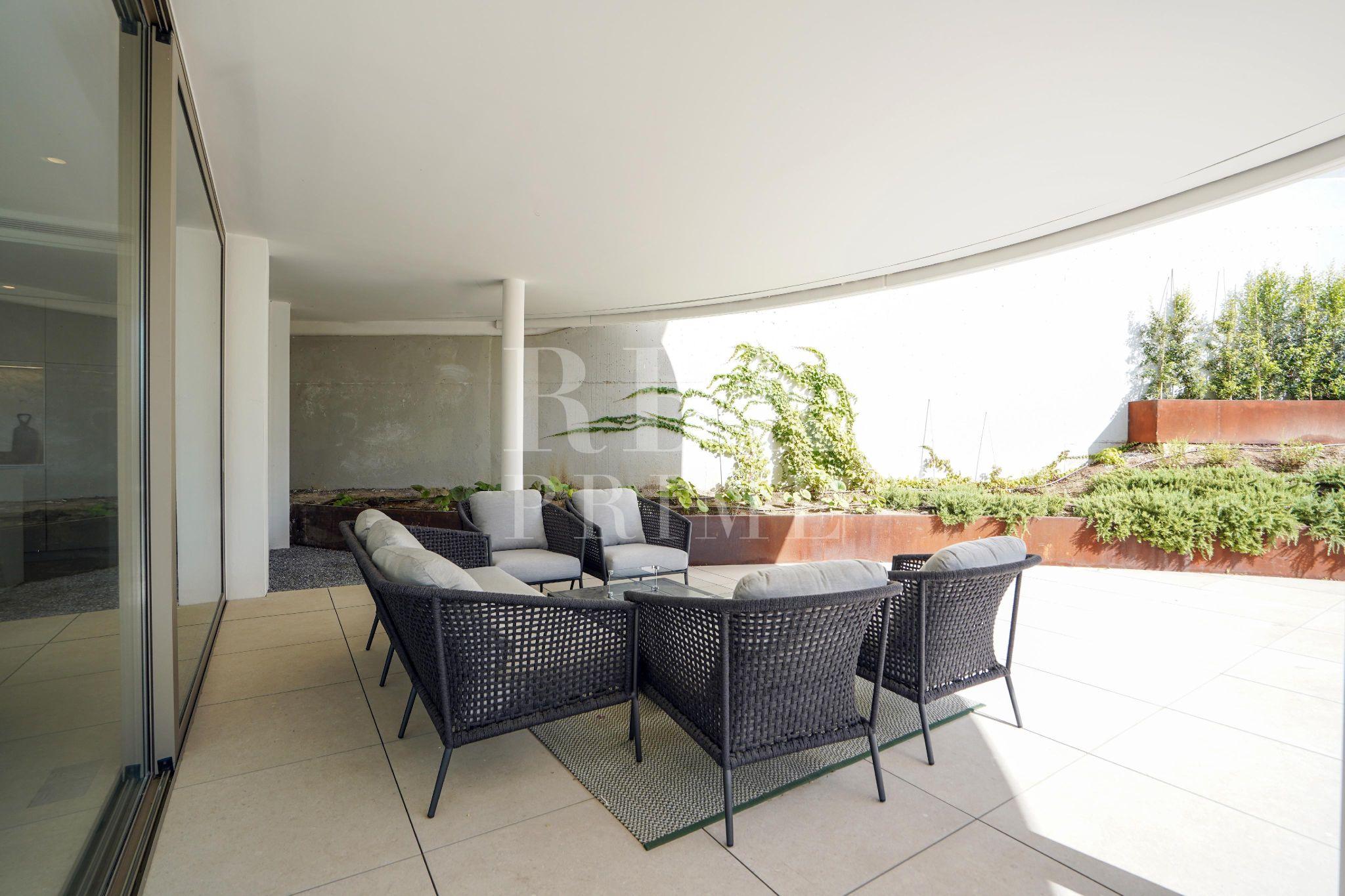 Exclusivo apartamento a estrenar en venta en planta baja, situado en una de las promociones más prestigiosas de la zona entre Marbella y Benahavís. Esta elegante promoción combina diseño contemporáneo, confort y vistas al mar, y ofrece un estilo de vida de lujo incomparable en la Costa del Sol. Con 174 m² de superficie interior y una gran terraza con jardín privado, la vivienda integra a la perfección los espacios interiores y exteriores, ideales para relajarse y disfrutar de las puestas de sol. El salón-comedor luminoso, con cocina de concepto abierto equipada con electrodomésticos Miele, se conecta directamente con la terraza y el jardín. Dispone de 3 dormitorios con baño en suite y un aseo adicional, destacando la suite principal por su amplitud y su elegante baño de diseño. La vivienda incluye suelo radiante en toda la vivienda, dos plazas de garaje y un trastero. Está lista para entrar a vivir y es la última vivienda disponible en la Fase I. La urbanización ofrece amenidades de 5 estrellas: piscinas interiores y exteriores, spa, gimnasio, health club, área de yoga y meditación, zona infantil, petanca, business centre y seguridad 24 horas. Se trata de una oportunidad única de inversión en una promoción boutique que redefine el lujo y la exclusividad en la Costa del Sol.