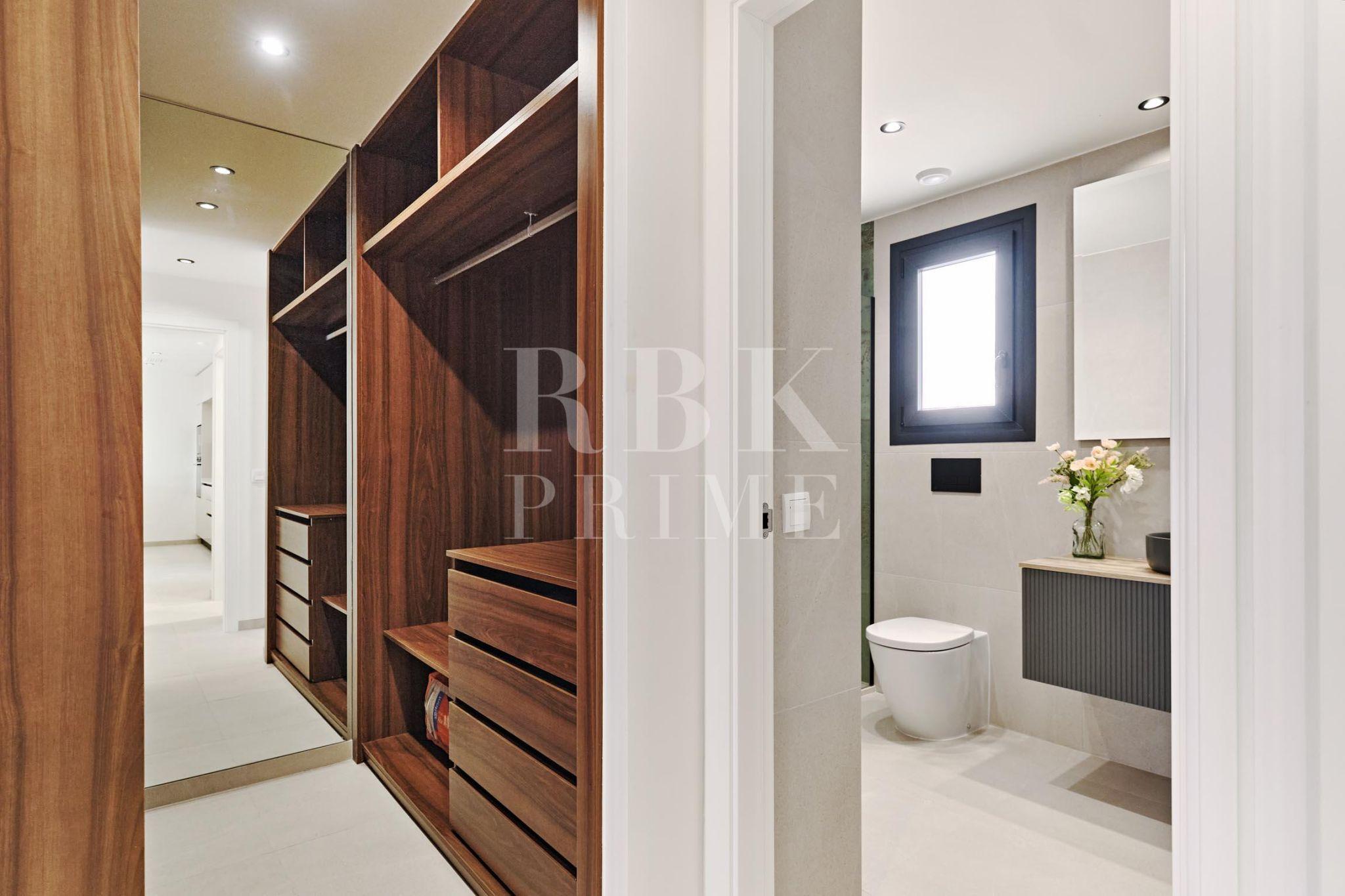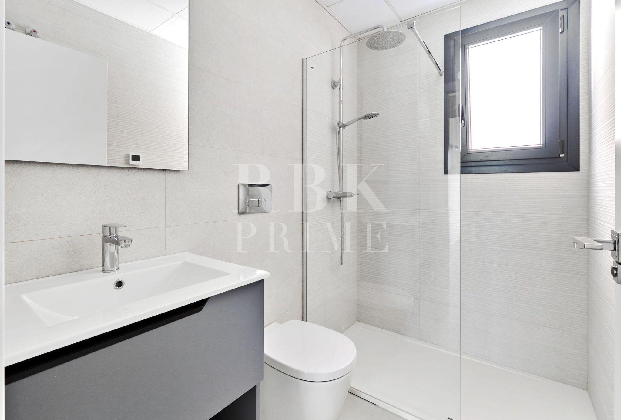 Elegante apartamento de planta baja en venta en una exclusiva promoción de obra nueva en Torrevieja (Alicante), situada a solo 250 m del mar. La vivienda con una superficie construida de 98 m², cuenta con 2 dormitorios y 2 baños, uno de ellos en suite. La cocina de concepto abierto se integra armoniosamente con el amplio salón, creando un espacio luminoso y funcional. Desde el salón y ambos dormitorios se accede directamente a una amplia terraza que se prolonga hacia un jardín privado de 36 m², ideal para disfrutar del clima mediterráneo. La orientación sur garantiza una óptima entrada de luz natural durante todo el día. El apartamento está equipado con materiales de primera calidad, como suelo radiante eléctrico en los baños, sistema de aerotermia para la producción de agua caliente sanitaria (ACS) y climatización frío-calor, que garantizan un alto nivel de confort y eficiencia energética durante todo el año. La propiedad incluye una plaza de aparcamiento y un trastero. Es una excelente opción tanto como residencia habitual como segunda vivienda o inversión, ya que combina diseño moderno, confort y espacios exteriores privados en una ubicación privilegiada cerca del mar.