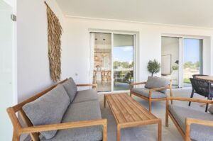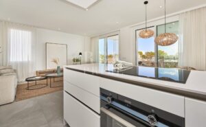 Promoción de obra nueva de un complejo residencial en venta en Cala d’Or, Mallorca. Este proyecto de apartamentos de 2 dormitorios y 2 baños (uno en suite) destaca por su arquitectura moderna, en la que predomina el color blanco. Todas las viviendas disponen de un amplio salón, que se abre a la terraza, y un concepto de cocina integrada con el comedor, optimizando la luz natural y creando una sensación de amplitud. La cocina se entrega completamente amueblada con electrodomésticos de alta gama. Los apartamentos cuentan con amplias terrazas con bonitas vistas al puerto deportivo de Cala d’Or y a las zonas comunitarias. Además, los áticos disponen de acceso a su propia terraza-solárium, que incluye preinstalación para piscina. Las viviendas están rodeadas por amplios jardines y una piscina comunitaria, lo que invita a disfrutar del privilegiado clima mediterráneo. Cada propiedad incluye una plaza de aparcamiento en superficie y un trastero. La entrega de los apartamentos está prevista para el principio del segundo trimestre de 2025. Las imágenes son renders.
