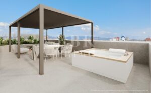 Este amplio y lujoso tríplex de obra nueva, con una superficie de 212 m², está a la venta en un exclusivo complejo residencial en Nou Llevant, Palma de Mallorca. Se encuentra a solo 10 minutos en coche del aeropuerto y a pocos metros del puerto de Portixol. La propiedad, distribuida en varios niveles, cuenta con 4 dormitorios, siendo el principal con acceso a una terraza privada de 9 m². Dispone de 3 baños, dos de ellos en suite, un aseo para invitados y una lavandería. La cocina abierta se integra perfectamente con el comedor y el salón, creando un ambiente ideal para el entretenimiento y la vida diaria. Las grandes ventanas de cristal del suelo al techo maximizan la entrada de luz naturala a la vivienda. Además, la propiedad cuenta con un solarium de 85 m² con jacuzzi. El precio también incluye un práctico trastero. El proyecto ofrece tres estilos completos de diseño de interiores, que otorgan un toque único y personalizado, utilizando materiales de la más alta calidad. Las zonas comunes incluyen gimnasio, piscina comunitaria, spa, amplio salón, cafetería, simulador de golf, seguridad 24 horas, sistemas de alarma y servicio de conserjería.