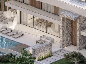 Exclusiva y maravillosa villa de lujo en venta de unos 430 m² de superficie útil ubicada en Santa Ponsa, al suroeste de Mallorca. Su diseño impacta desde el acceso: una majestuosa puerta pivotante de 6 metros de alto bajo un porche revestido en piedra natural. Desarrollada en tres plantas conectadas por ascensor, está decorada con materiales nobles como mármol, madera y piedra marés. En la planta baja, un amplio salón con chimenea, comedor y cocina se integran en un espacio luminoso, junto a un dormitorio doble en suite, una oficina y un aseo. En la planta superior hay tres dormitorios en suite con vestidor y amplia terraza, incluyendo una master suite con baño de super lujo y terraza privada. También hay una sala de estar polivalente que puede adaptarse como dormitorio adicional. El sótano está dedicado al bienestar: spa, sauna, baño turco, piscina interior, gimnasio y sala de cine. En el exterior, destaca la terraza con piscina de 40 m², jacuzzi, jardines mediterráneos y cocina exterior. La vivienda cuenta con suelo radiante y un sistema domótico KNX de última generación. Ubicada en un enclave privilegiado que combina mar, naturaleza y servicios de alto nivel como playas, campos de golf y un prestigioso club náutico, esta propiedad redefine el confort y la elegancia.