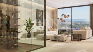 Villa de lujo en venta en una de las comunidades cerradas más exclusivas de Benahavís, Málaga. Esta vivienda de obra nueva se encuentra en una parcela de 3.757 m² y ofrece 1.107 m² de superficie construida con vistas panorámicas al Mediterráneo y las montañas. Se distribuye en 3 niveles conectados por ascensor. La planta baja incluye una zona de bienestar con piscina climatizada, spa, gimnasio, cine, bodega, sala de ocio con bar y dos dormitorios. En la planta principal hay 2 dormitorios en suite, amplias zonas de estar y una cocina de diseño con electrodomésticos de alta gama y acabados en piedra natural. En la planta superior hay 3 dormitorios más, cada uno con terraza privada, incluida una gran suite principal con vestidor y baño tipo spa. También dispone de despacho y biblioteca. Las zonas principales se abren a terrazas, jardines y una piscina infinita de agua salada con jacuzzi, una zona hundida, elementos de agua, un comedor exterior y una cocina al aire libre, ideales para relajarse o recibir invitados. Entre sus extras: carpintería de nogal, suelo radiante, climatización por aerotermia, sistema domótico Control4, seis plazas de aparcamiento con cargador para coche eléctrico y calificación energética A. La villa se vende completamente amueblada y combina diseño, confort y privacidad en una ubicación privilegiada.