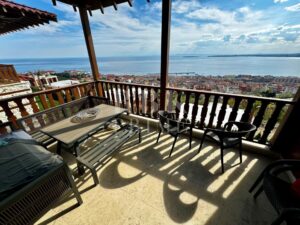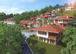 Maravillosa villa de 2 plantas en venta con vistas panorámicas al mar y la montaña en Sveti Vlas, Bulgaria. Está ubicada en un prestigioso complejo cerrado con zona protegida, a los pies de la majestuosa montaña Stara Planina y en la costa del Mar Negro. Construida en estilo tradicional búlgaro, la propiedad se integra perfectamente con el entorno natural y el encanto cultural de Sveti Vlas. En la primera planta, se encuentra un amplio salón con cocina americana, una terraza con magníficas vistas, un aseo y un dormitorio con baño en suite. La planta baja alberga tres dormitorios, cada uno con su propio baño en suite, además de un trastero y acceso directo al jardín privado, que cuenta con piscina y sauna. Su ubicación privilegiada, que combina mar y montaña, junto con su orientación sur y vistas espectaculares al paseo marítimo, convierten esta villa en el lugar perfecto para vivir o vacacionar en la costa del Mar Negro. Además, es una excelente oportunidad de inversión para alquiler.