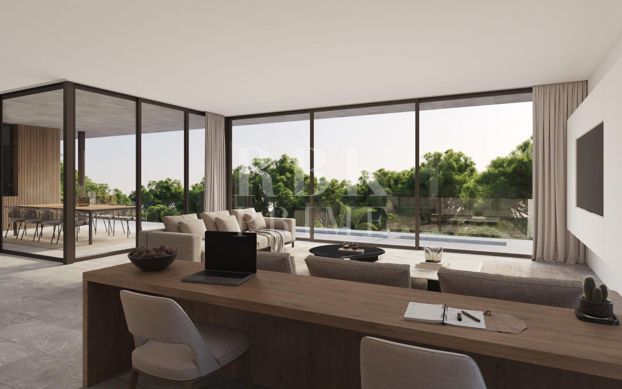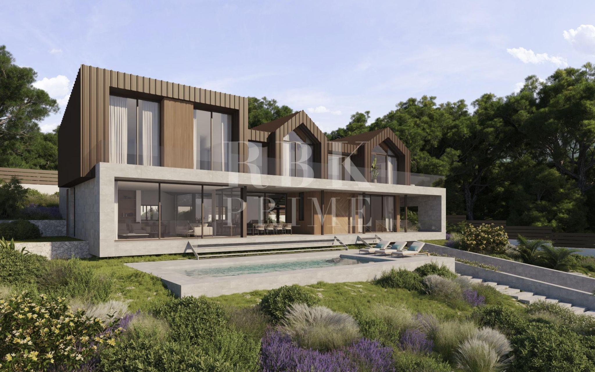 Exclusiva villa moderna en venta en Cala Vinyas, una de las zonas residenciales más prestigiosas del suroeste de Mallorca. La propiedad se desarrollará sobre una parcela de 1.380 m² y contará con una villa independiente de aproximadamente 480 m², distribuida en dos plantas más sótano. El proyecto contempla una vivienda de 5 dormitorios, todos con baño en suite, además de un aseo de cortesía. En el sótano, la villa dispondrá de un garaje con capacidad para dos vehículos y en el exterior, contará con una piscina privada y un cuidado jardín. La parcela ofrece vistas despejadas a la montaña y a zonas verdes protegidas no edificables, lo que garantiza que las vistas permanecerán intactas a largo plazo, aportando un valor añadido. Rodeada de naturaleza y a pocos minutos de playas de aguas cristalinas, campos de golf, colegios internacionales y la ciudad de Palma, esta propiedad ofrece un equilibrio excepcional entre privacidad, confort y proximidad a todos los servicios.El diseño de la villa es totalmente personalizable, permitiendo al cliente adaptar la distribución, los acabados y los detalles arquitectónicos. Las imágenes mostradas son renders orientativos y la información corresponde al proyecto del promotor.
