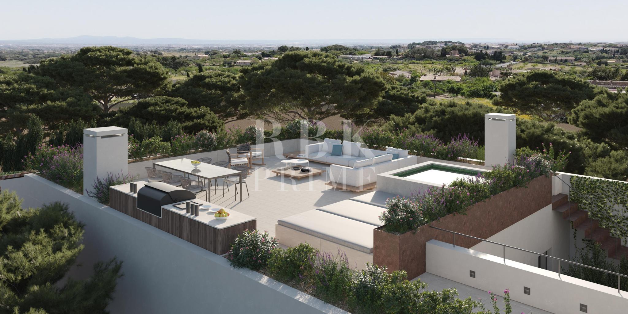 这座美妙的房子是马略卡岛 Establiments 出售的一个新项目,它将传统风格的魅力与现代设计融为一体。该物业占地307平方米;占地 537 平方米。一楼设有带燃木壁炉的宽敞客厅/餐厅、带烹饪岛的高端厨房以及带连接浴室和独立客用卫生间的主卧室。楼上还有两间带连接浴室的卧室、书房或阅读区以及 91 平方米的宏伟空间。露台享有全景。此外,这座房子的亮点是迷人的内部庭院,为该房产增添了更多特色。该酒店还拥有一个带自动灌溉系统的美丽花园和一个 30 平方米的花园。盐游泳池。为了让您更加舒适,房子还配有双车库、地暖、中央空调、天然石材和橡木地板、电视天线和卫星天线、视频输入电话和报警系统。至于户外区域,酒店设有两个烧烤设施:上层露台上的燃气烧烤设施和游泳池旁边的燃木烧烤设施。预计2025年底竣工,图片为效果图。